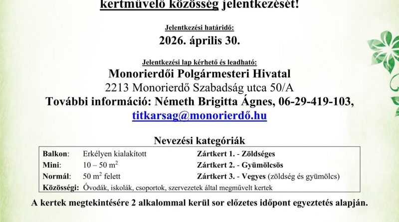 Read MorePerkáta 2026-ban is csatlakozik „A legszebb konyhakertek” pályázathoz. Az országos kezdeményezés célja, hogy bemutassa és elismerje a gondosan ápolt, rendezett,
