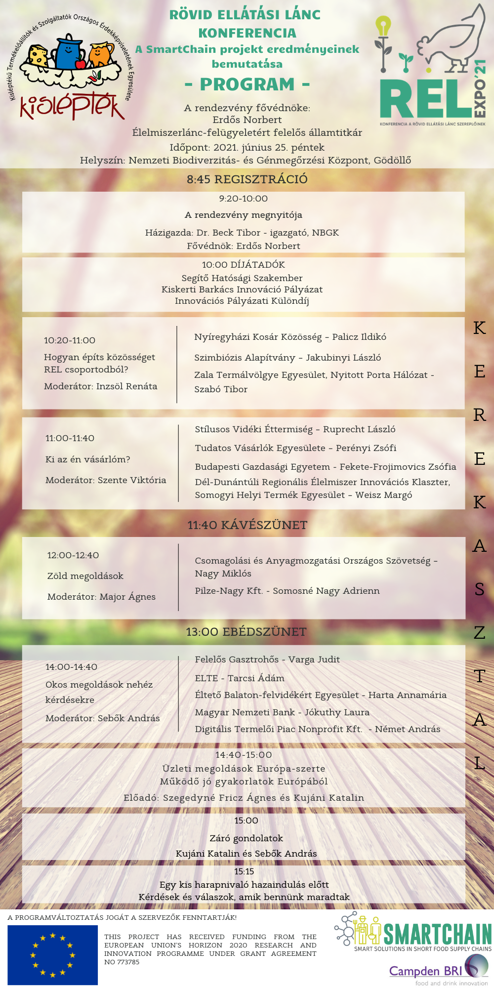 A Kislépték Egyesület 2021. június 25-én 10.00-17.00 között megrendezi a SMARTCHAIN I. (REL) Rövid Ellátási Lánc Expot és konferenciát a Nemzeti Biodiverzitás -és Génmegőrzési Központban Gödöllőn.