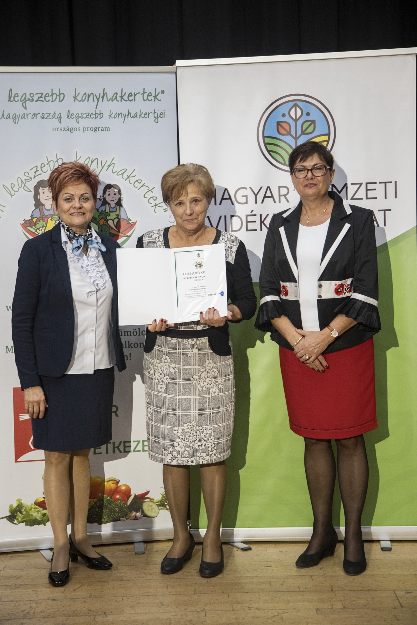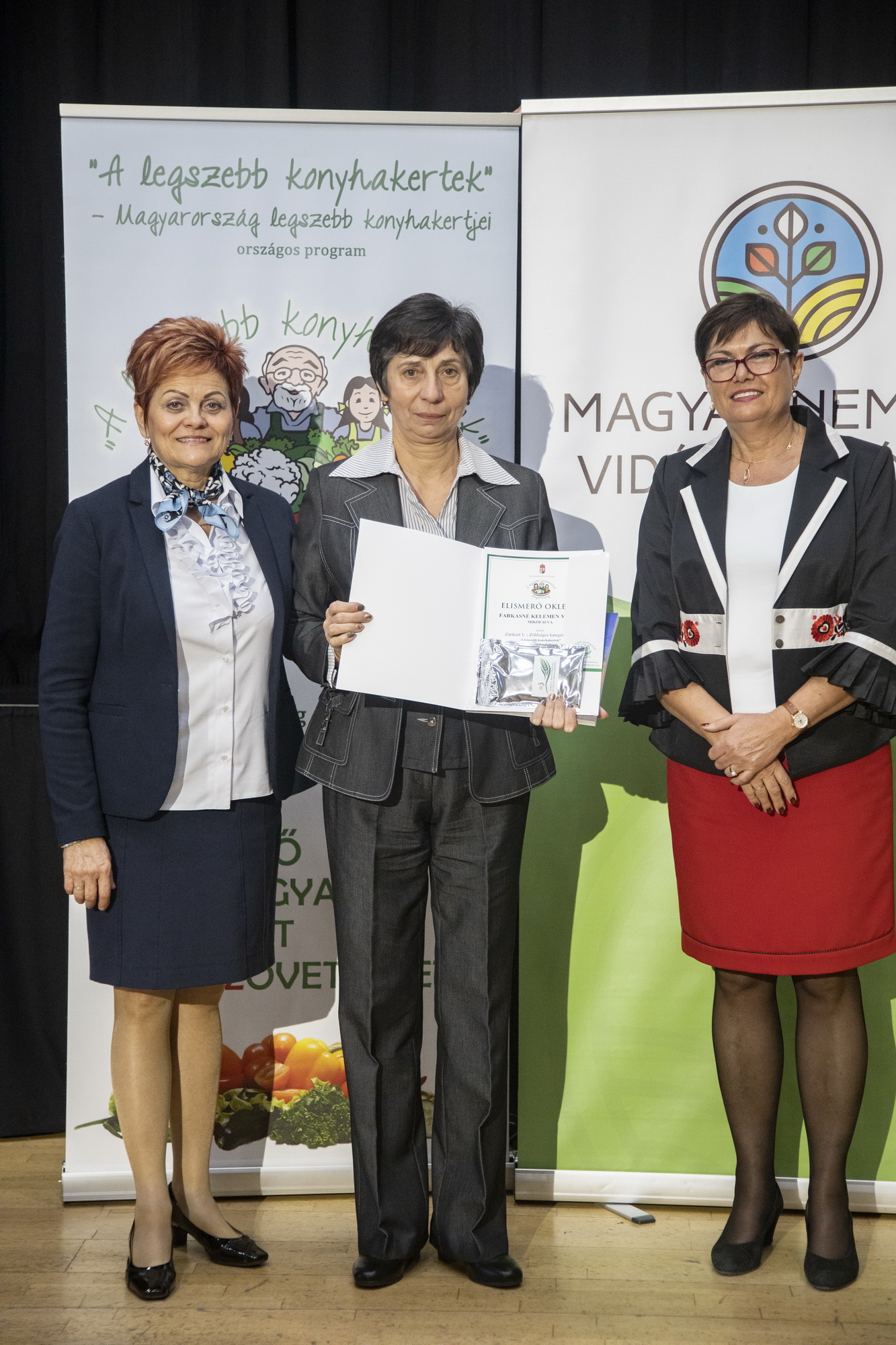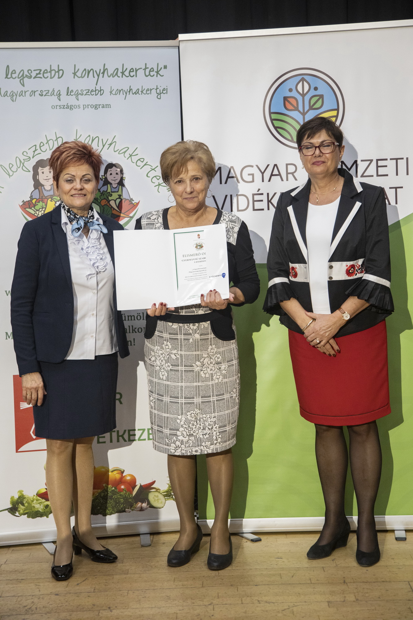 Szekeres Mónika Gizella és Ulacs Beáta Vinczéné Balogh Magdolna Elnök Asszony vegye át a koordinátori munkájáért az elismerést