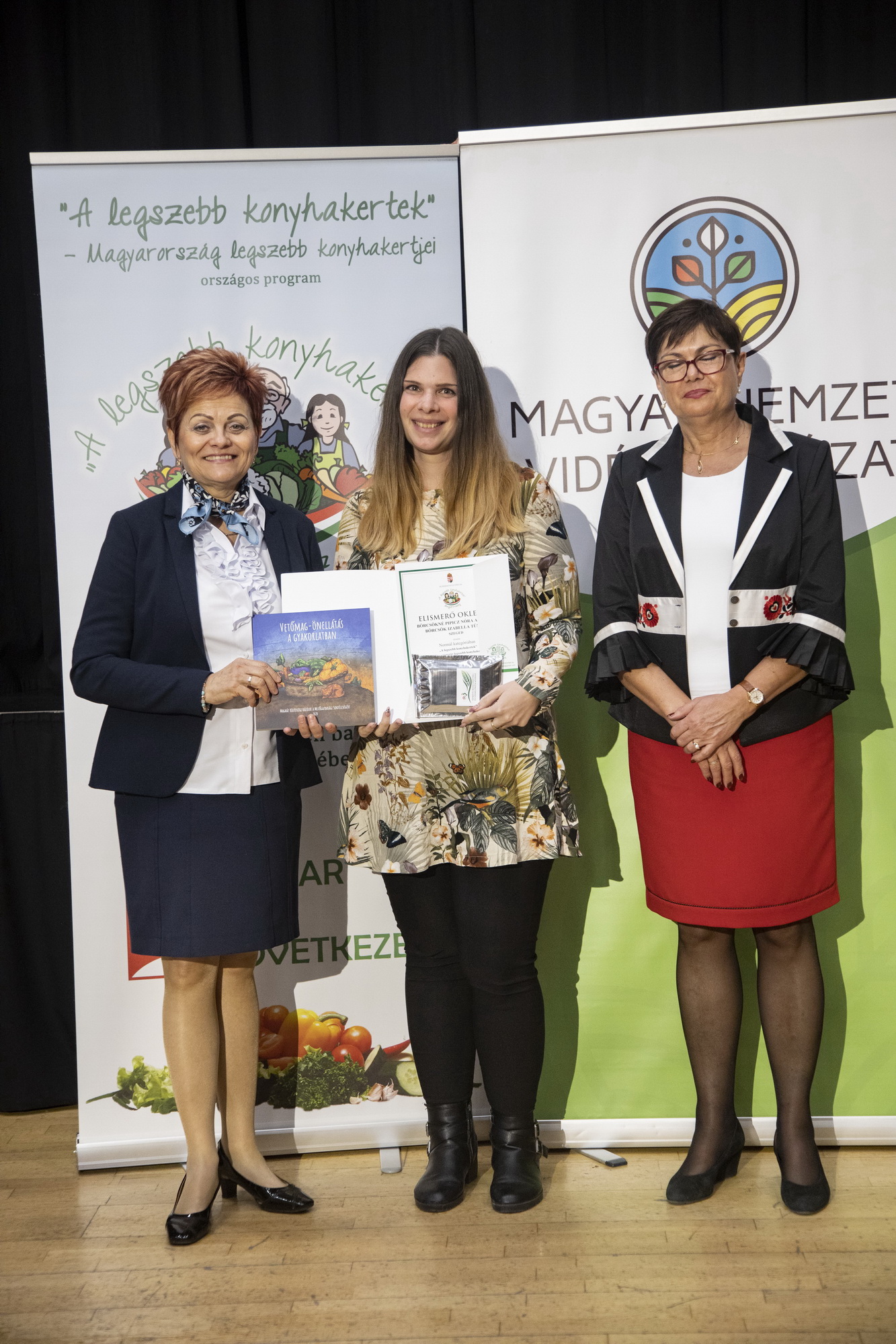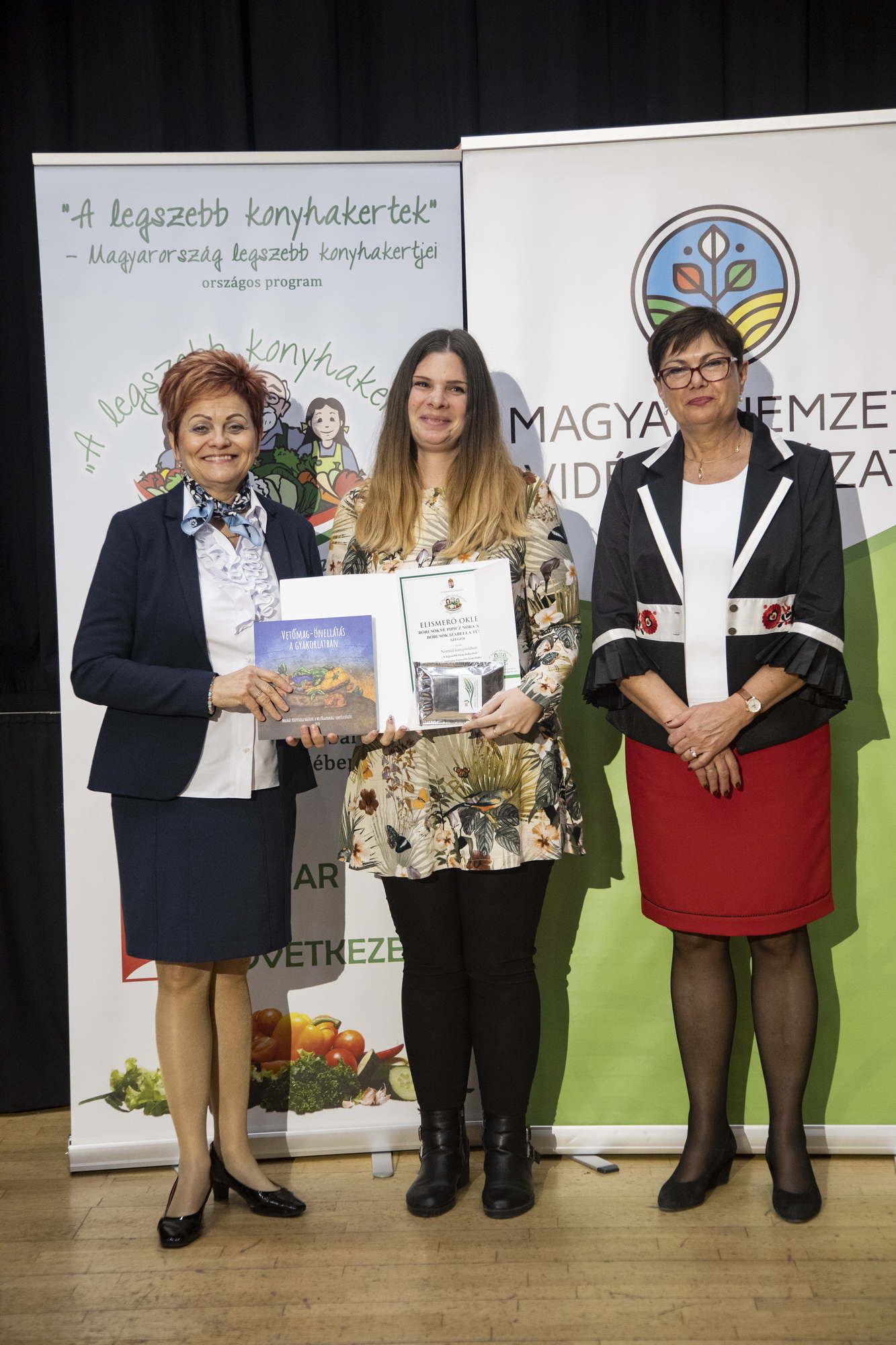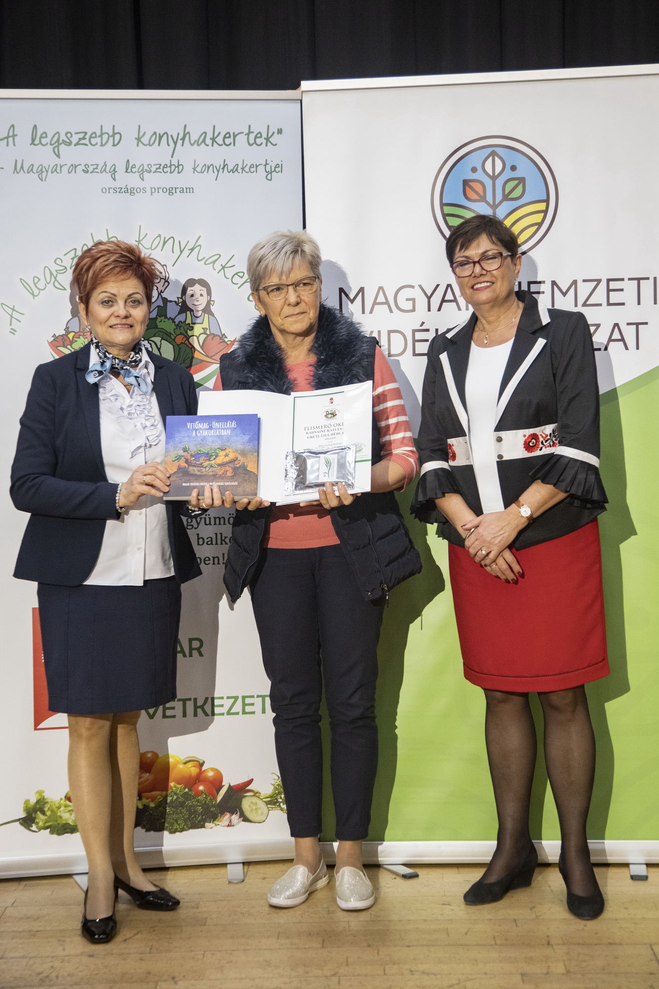 Szekeres Mónika Gizella és Ulacs Beáta Vinczéné Balogh Magdolna Elnök Asszony vegye át a koordinátori munkájáért az elismerést