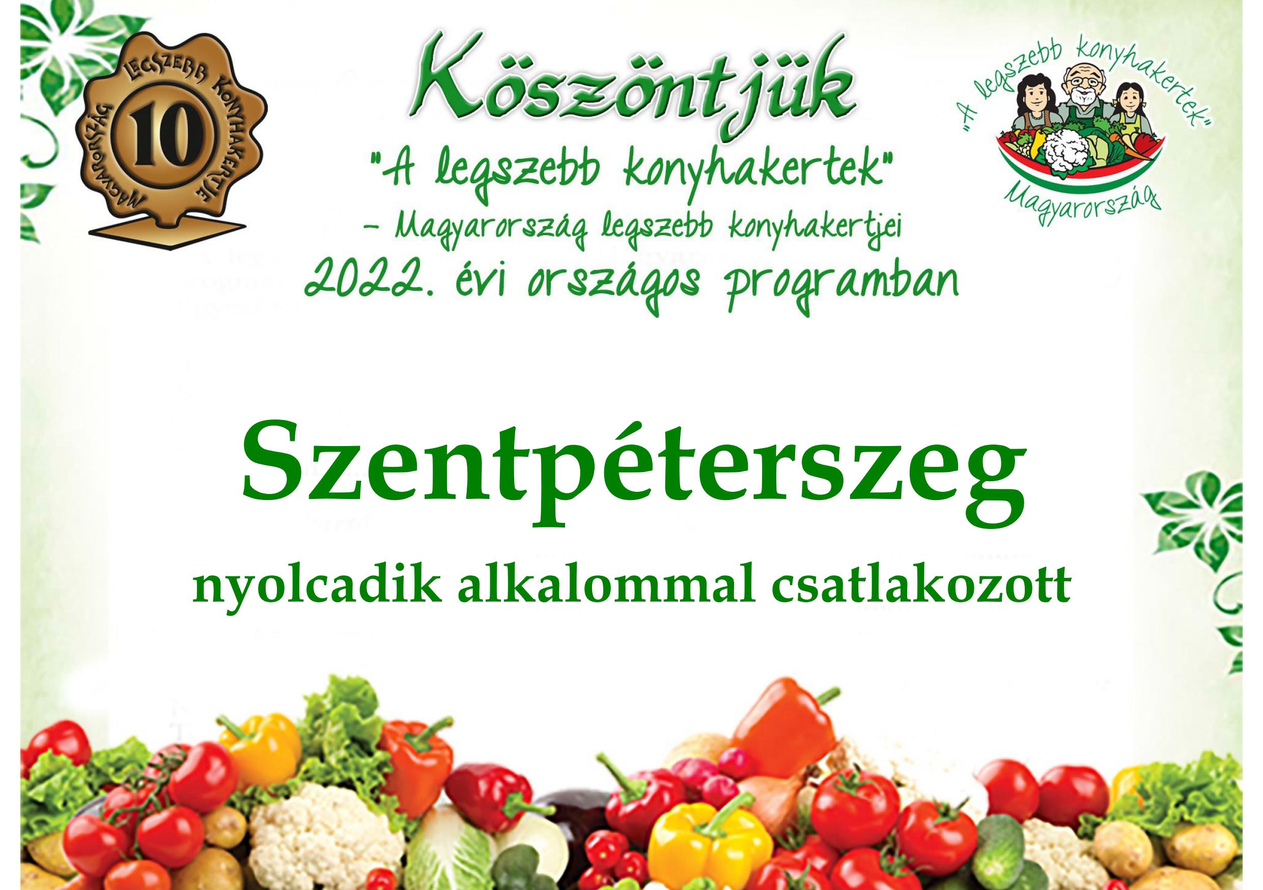 Szentpéterszeg Községi Önkormányzat képviseletében Kiss Gábor Csaba Polgármester Úr 2022. évben már nyolcadik alkalommal csatlakozik „A legszebb konyhakertek” – Magyarország legszebb konyhakertjei országos programhoz.