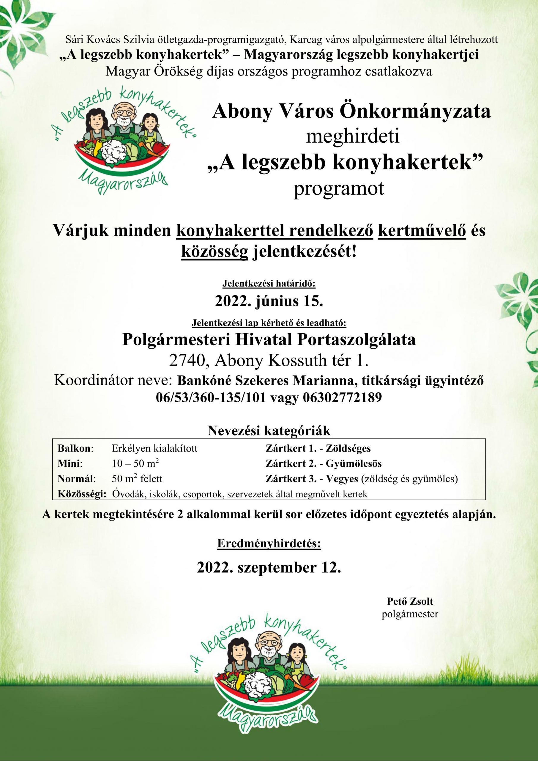 Abony – „A legszebb konyhakertek” program meghirdetése
