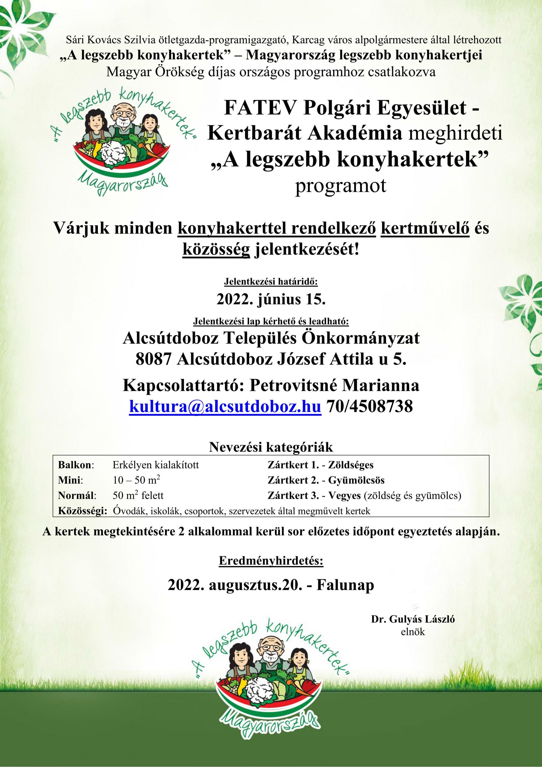 Dr. Gulyás László elnök, FATEV Polgári Egyesület – Kertbarát Akadémia képviseletében – csatlakozva