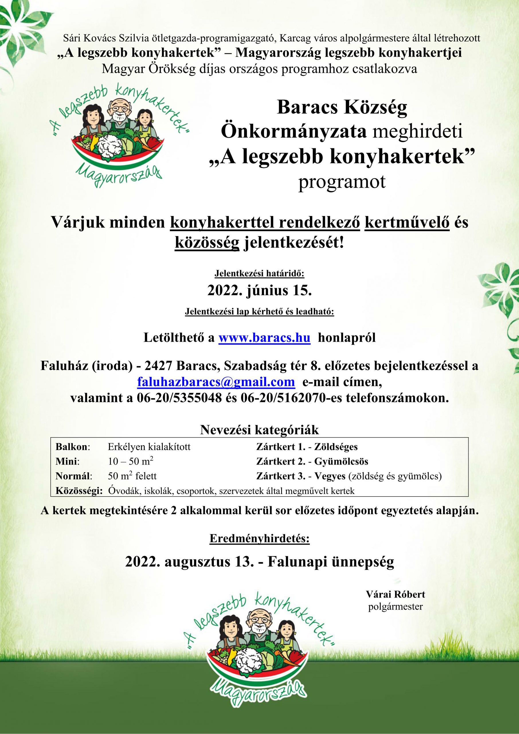 Baracs – „A legszebb konyhakertek” program meghirdetése