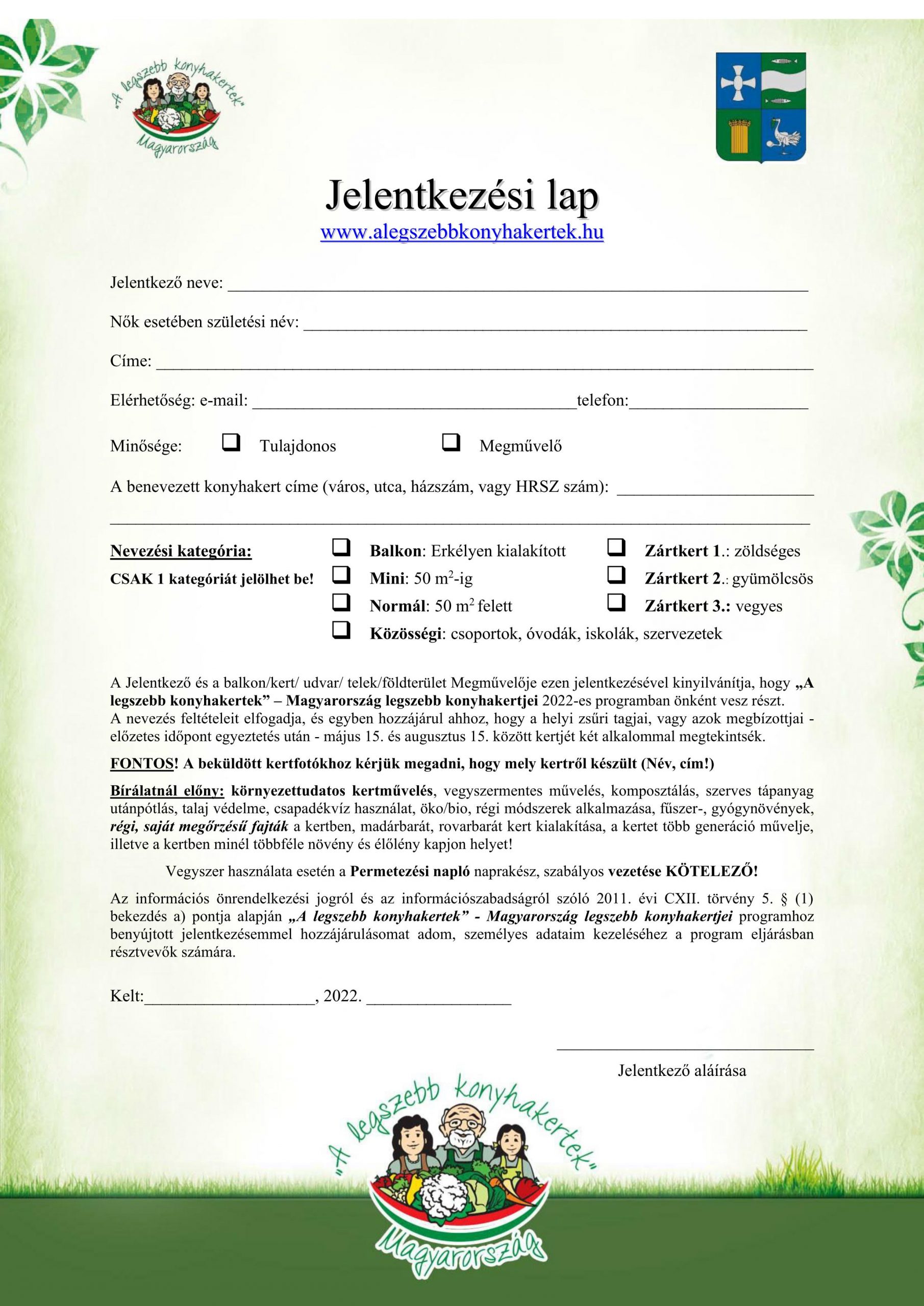Jelentkezési lap kérhető és leadható: