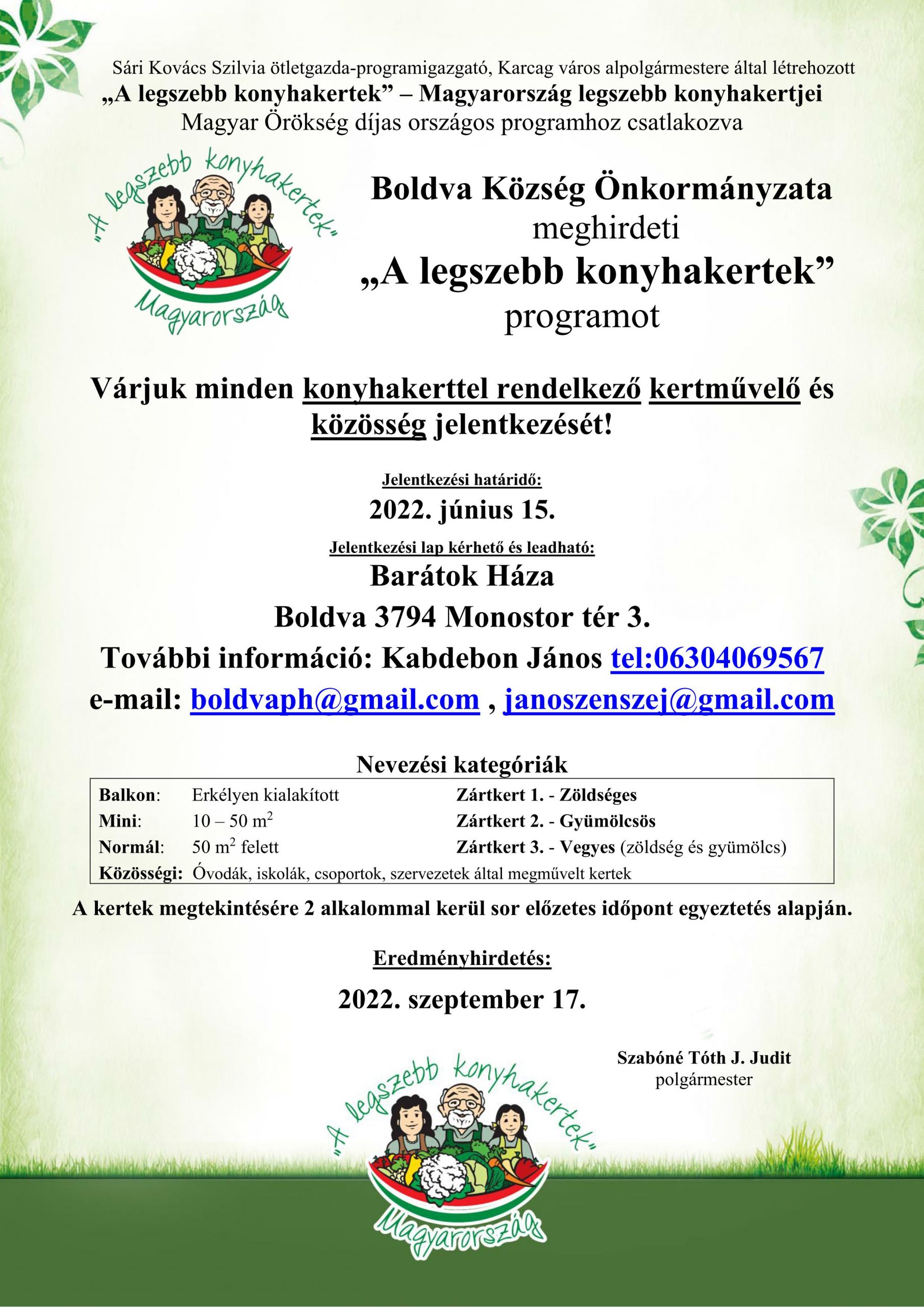 Boldva – „A legszebb konyhakertek” program meghirdetése