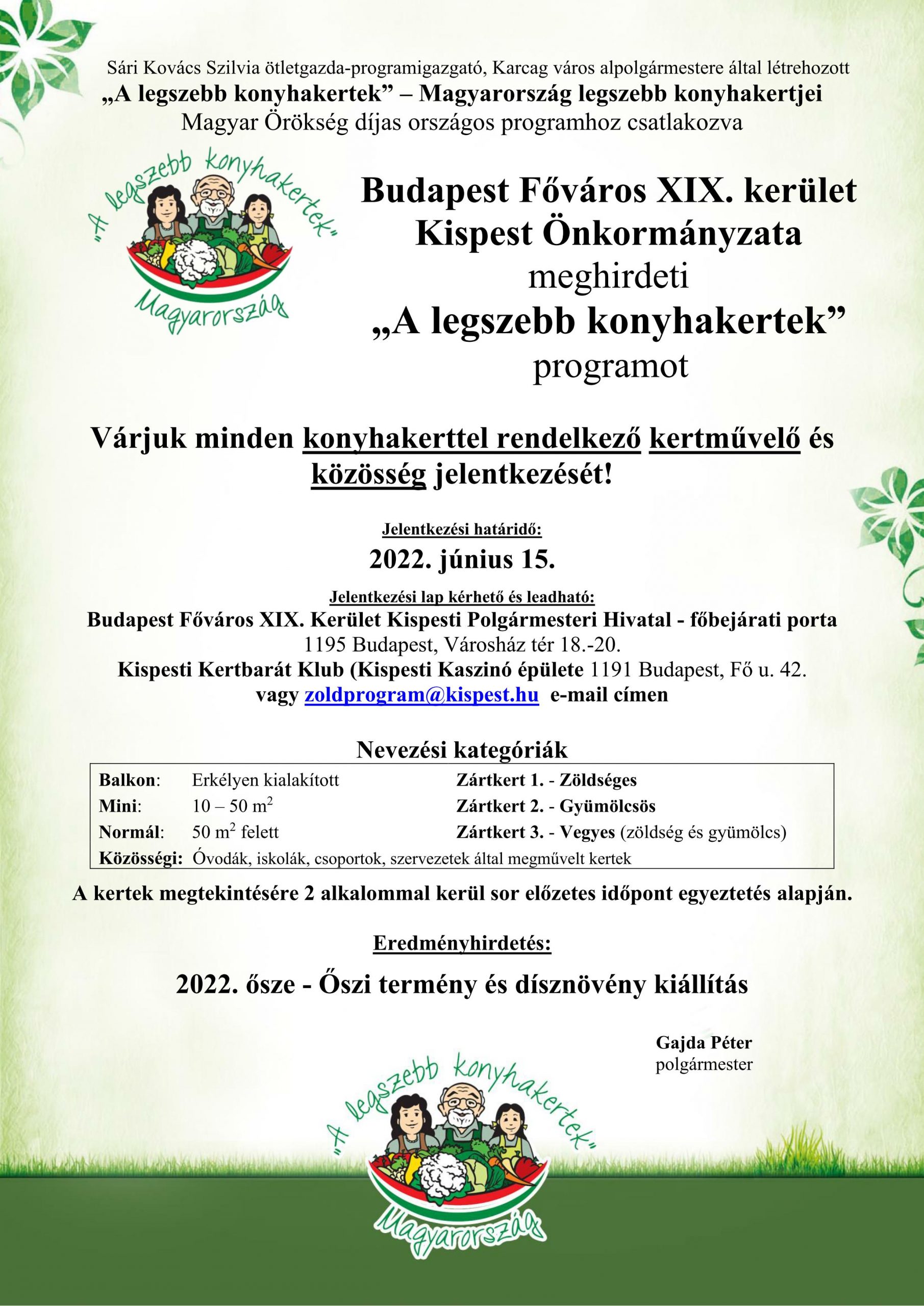 Budapest XIX. kerület – „A legszebb konyhakertek” program meghirdetése