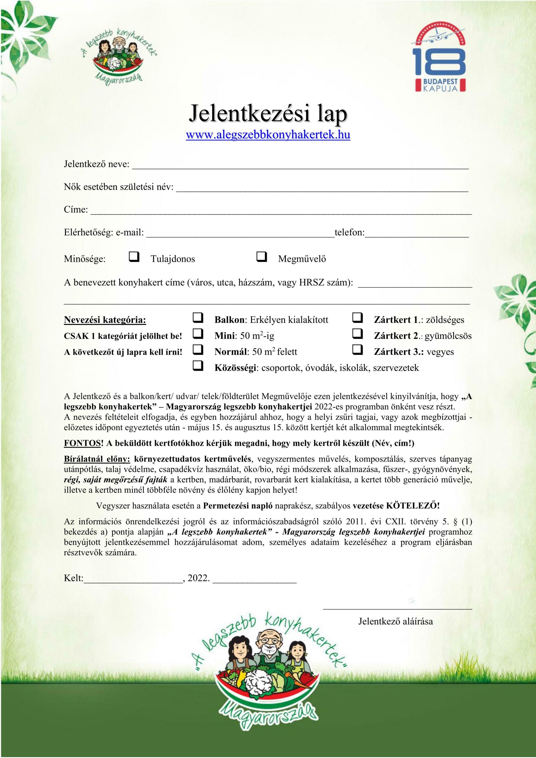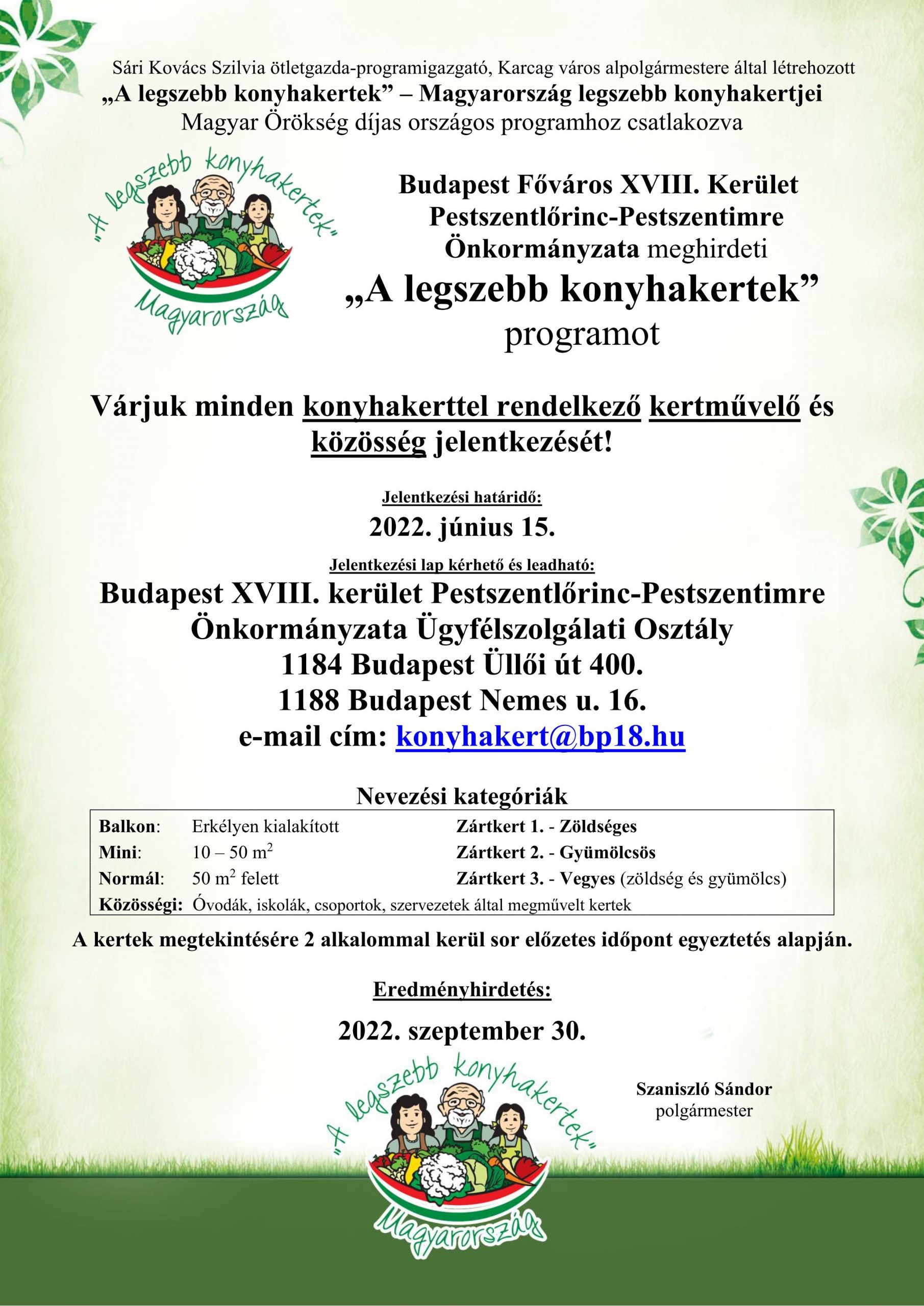 Budapest XVIII. Kerület – „A legszebb konyhakertek” program meghirdetése