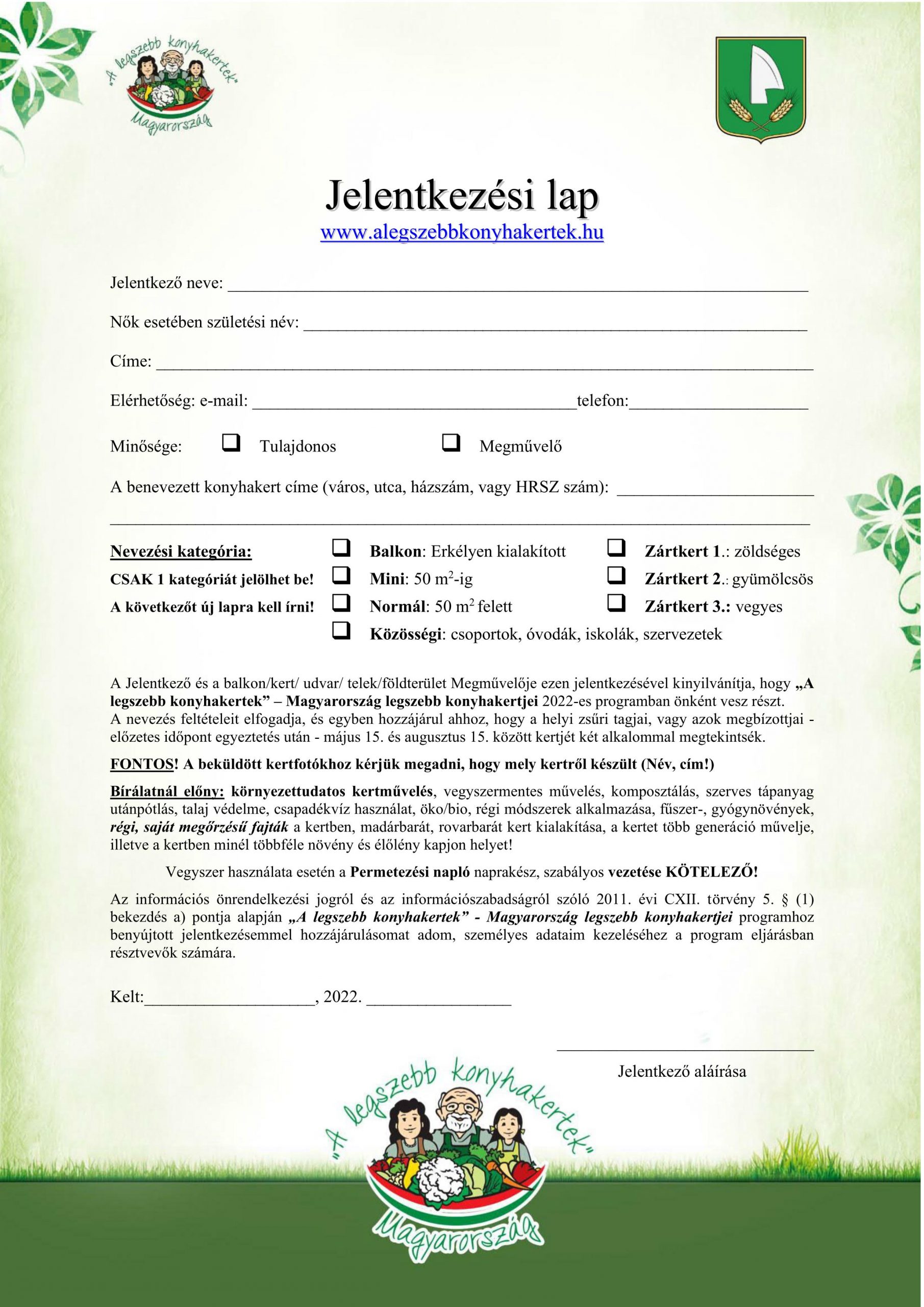Jelentkezési lap kérhető és leadható:
