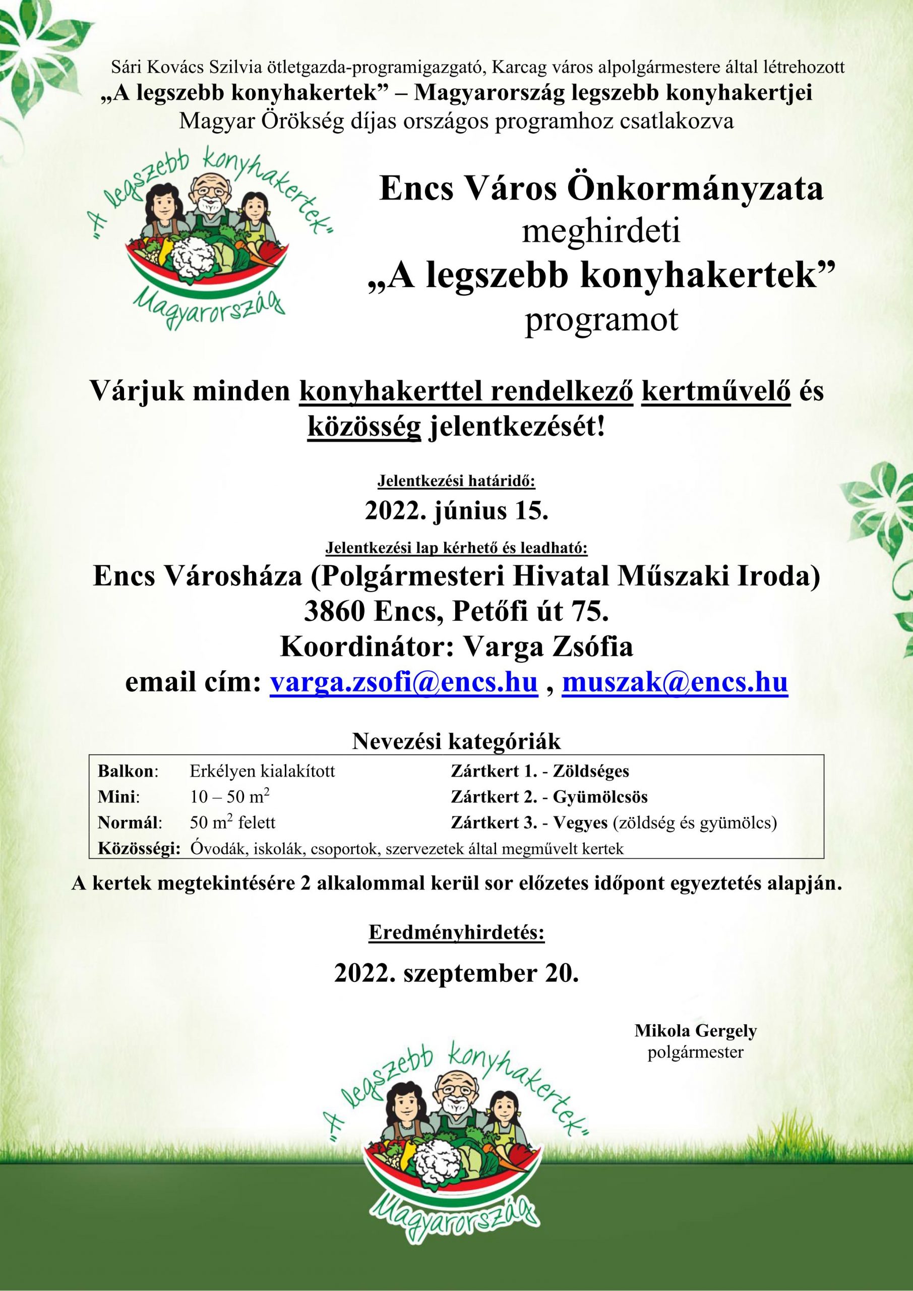 Encs – „A legszebb konyhakertek” program meghirdetése