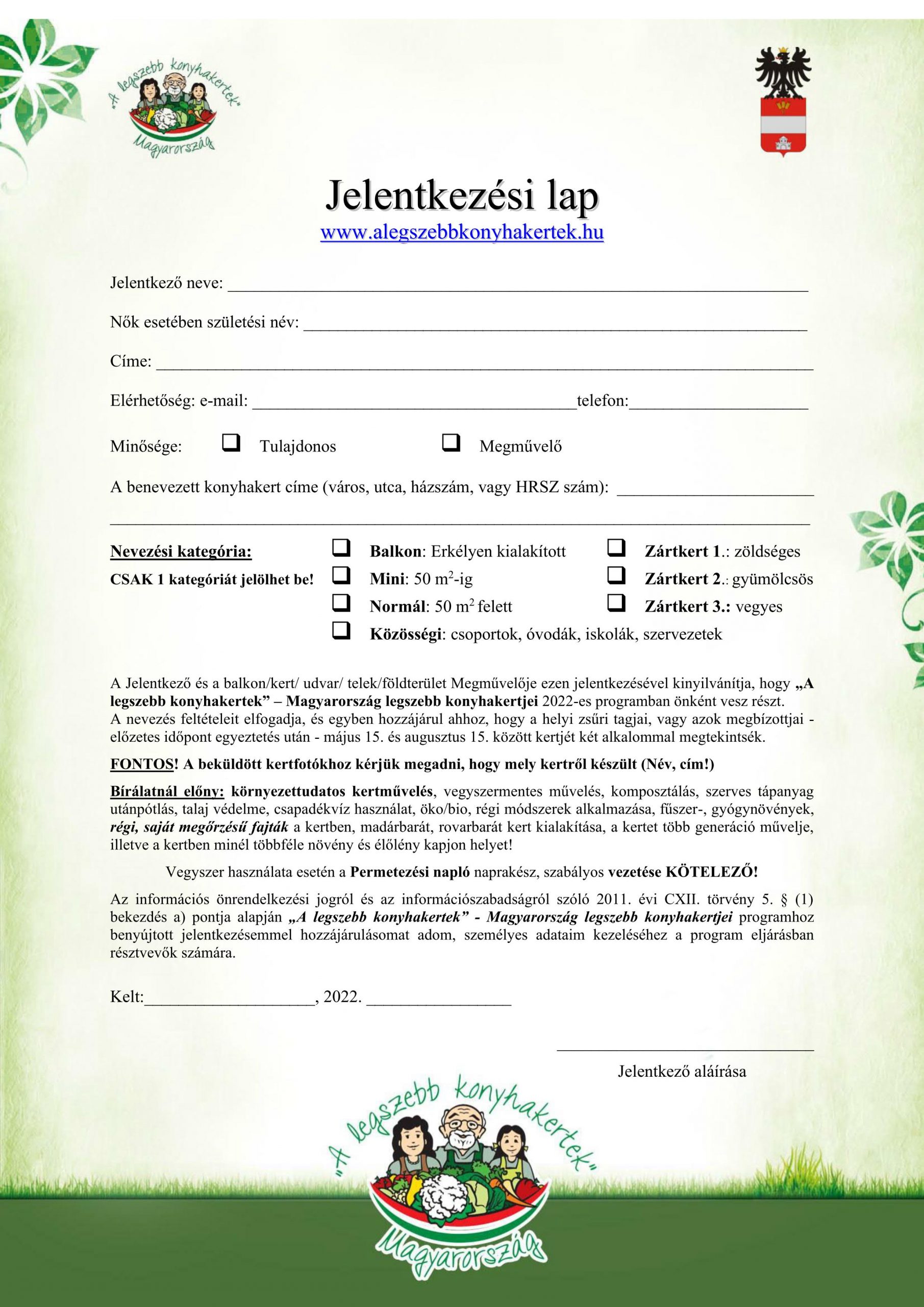 Jelentkezési lap kérhető és leadható: