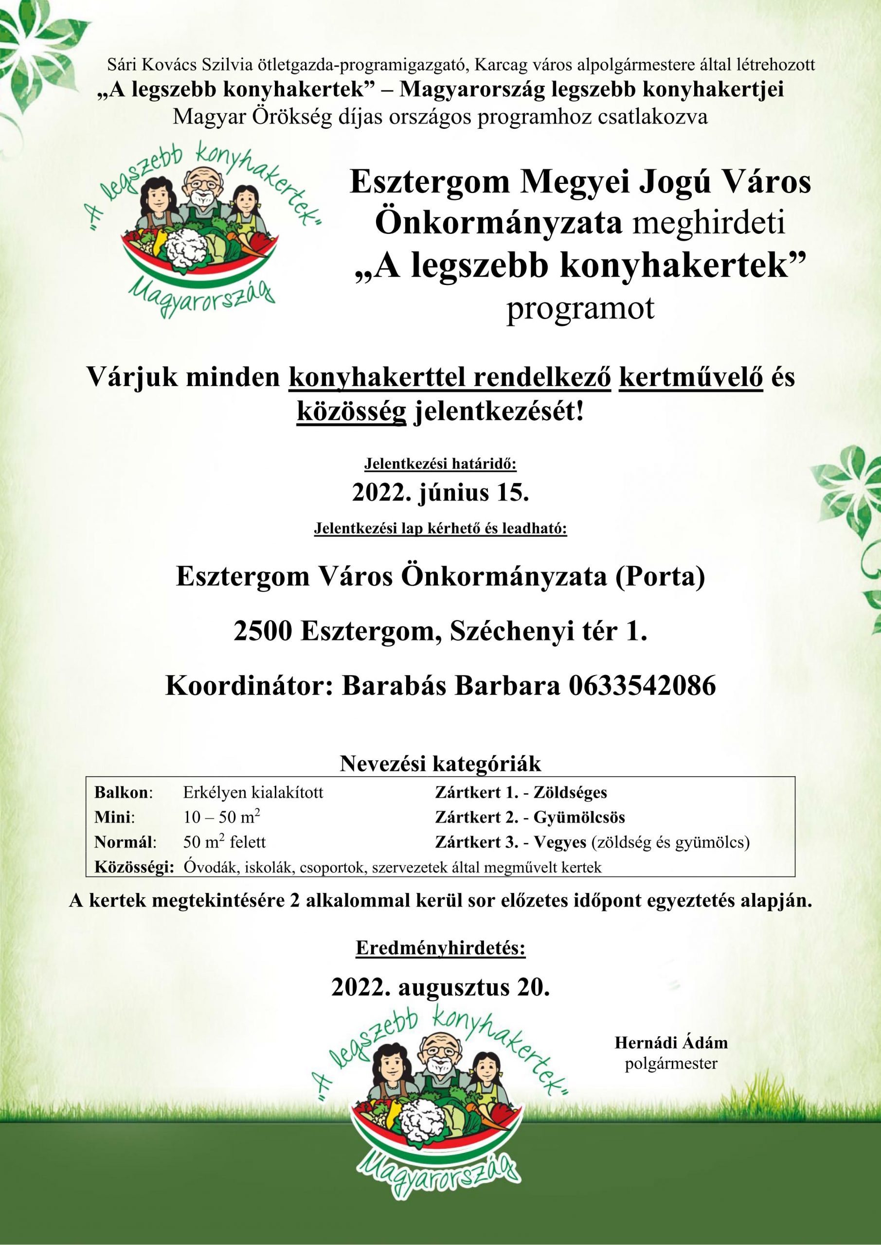 Koordinátor: Barabás Barbara 0633542086