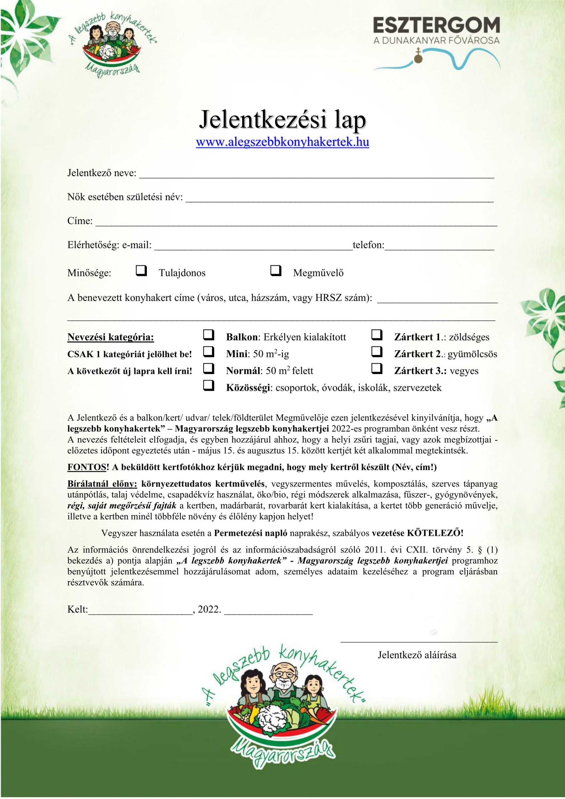 Jelentkezési lap kérhető és leadható: