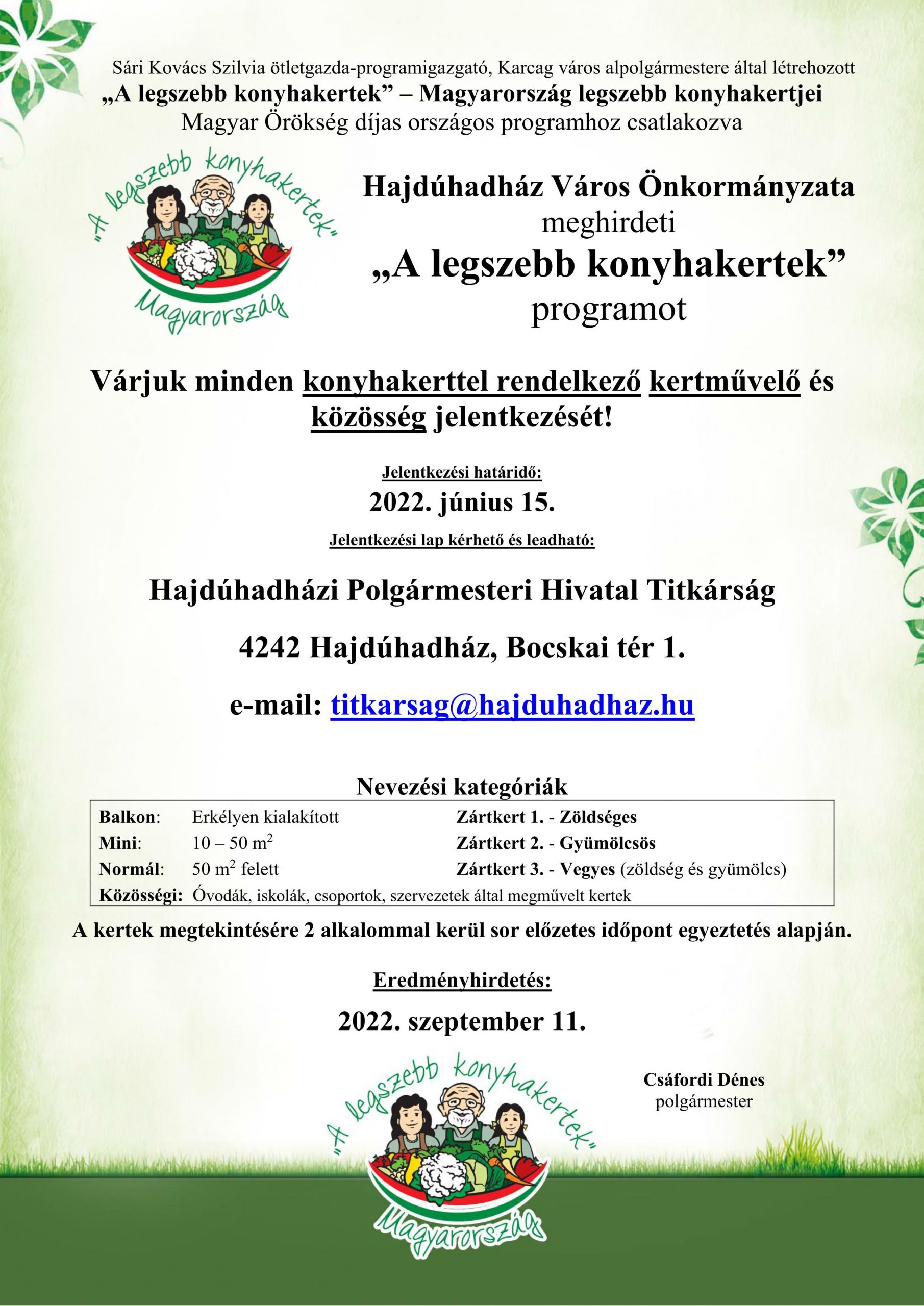 „A legszebb konyhakertek” – Magyarország legszebb konyhakertjei Magyar Örökség díjas országos programhoz meghirdeti Hajdúhadházon
