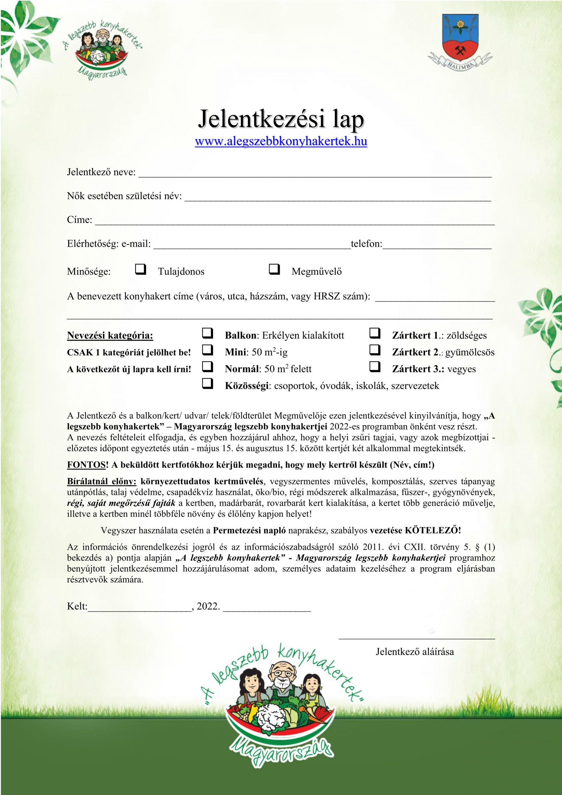 Jelentkezési lap kérhető és leadható: