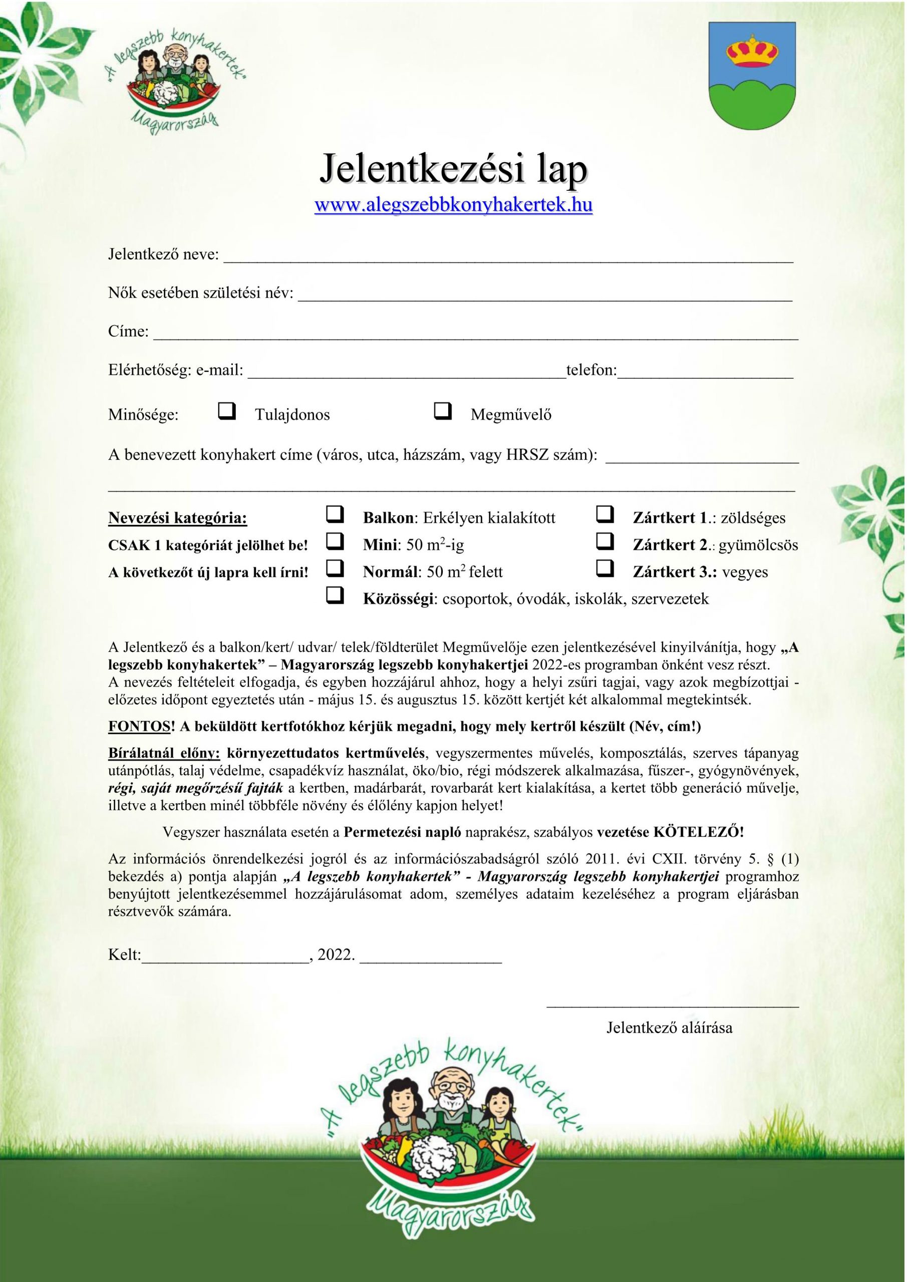 Jelentkezési lap kérhető és leadható: