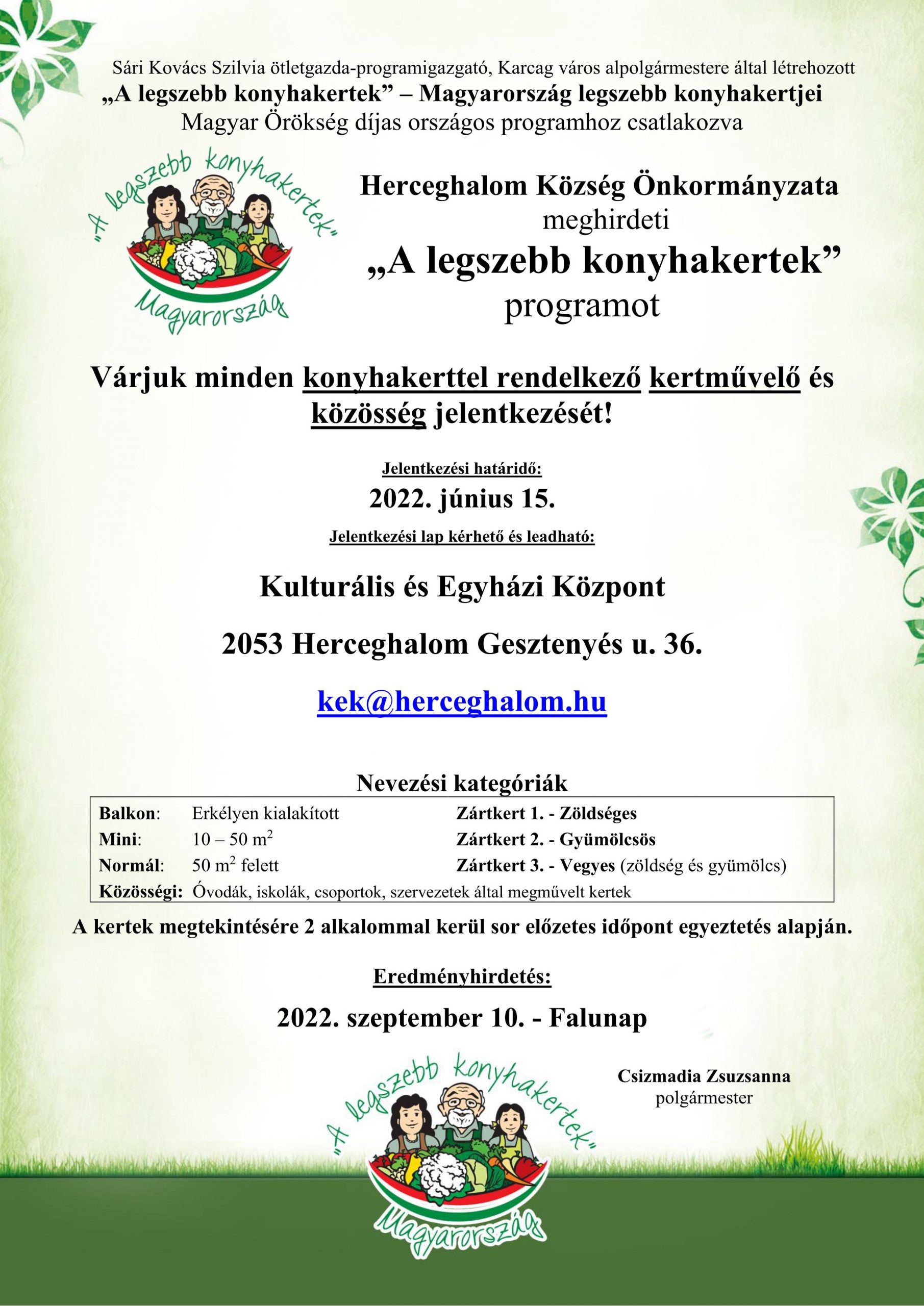 „A legszebb konyhakertek” – Magyarország legszebb konyhakertjei Magyar Örökség díjas országos programhoz meghirdeti Herceghalomon