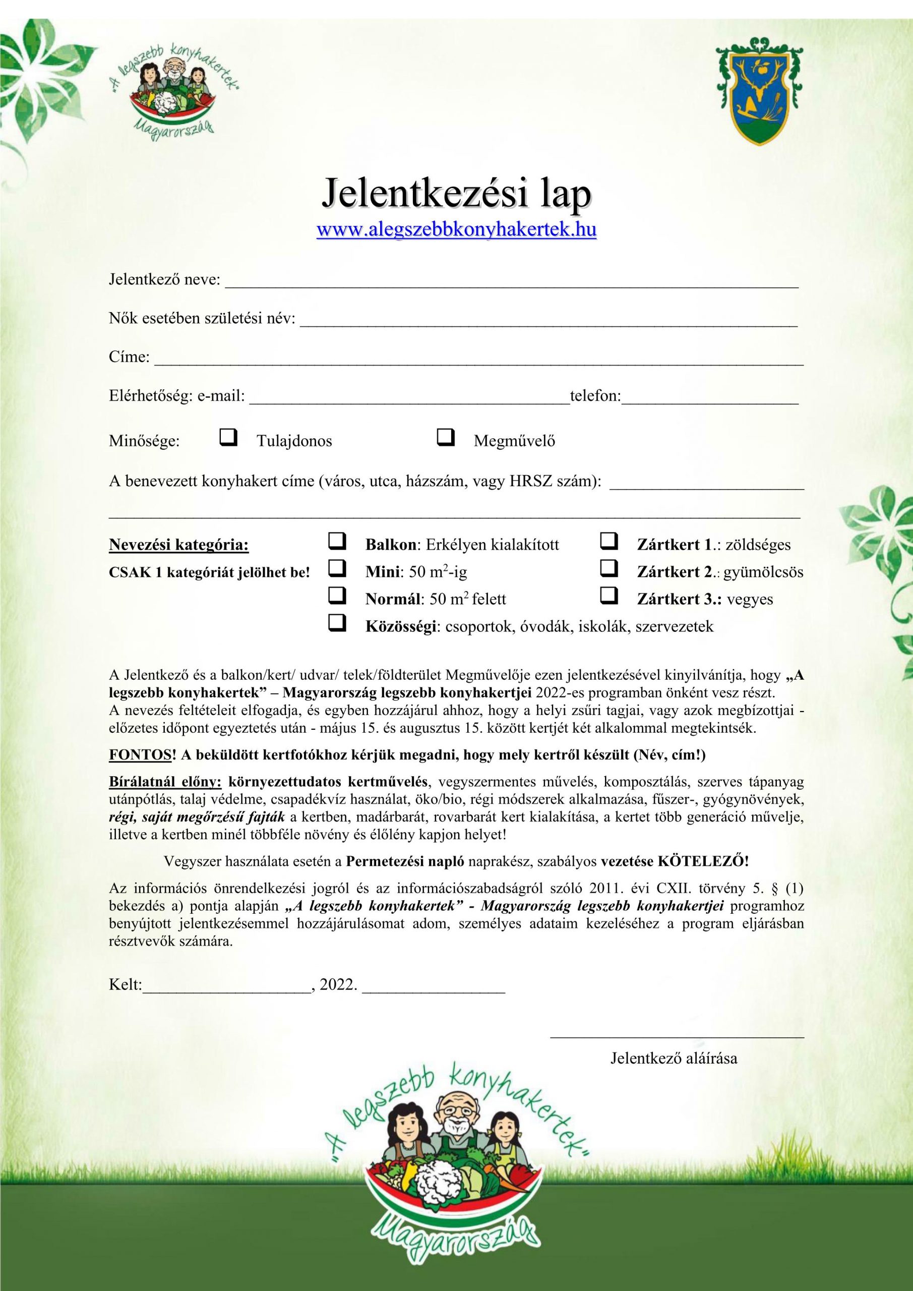Jelentkezési lap kérhető és leadható: