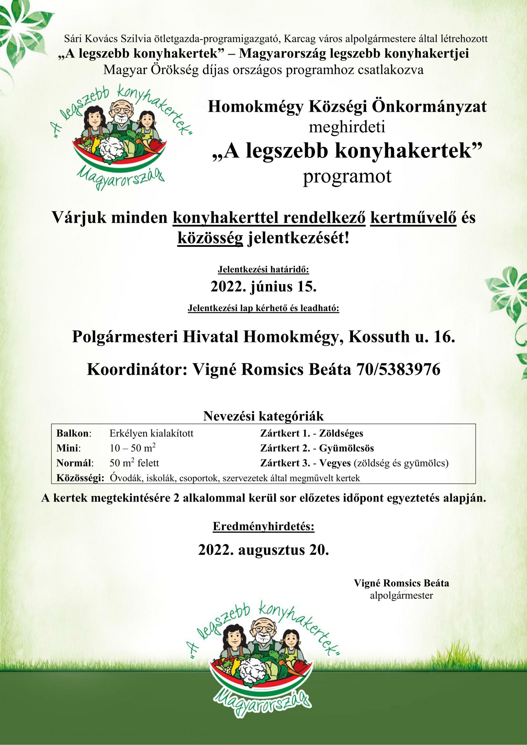 Homokmégy – „A legszebb konyhakertek” program meghirdetése