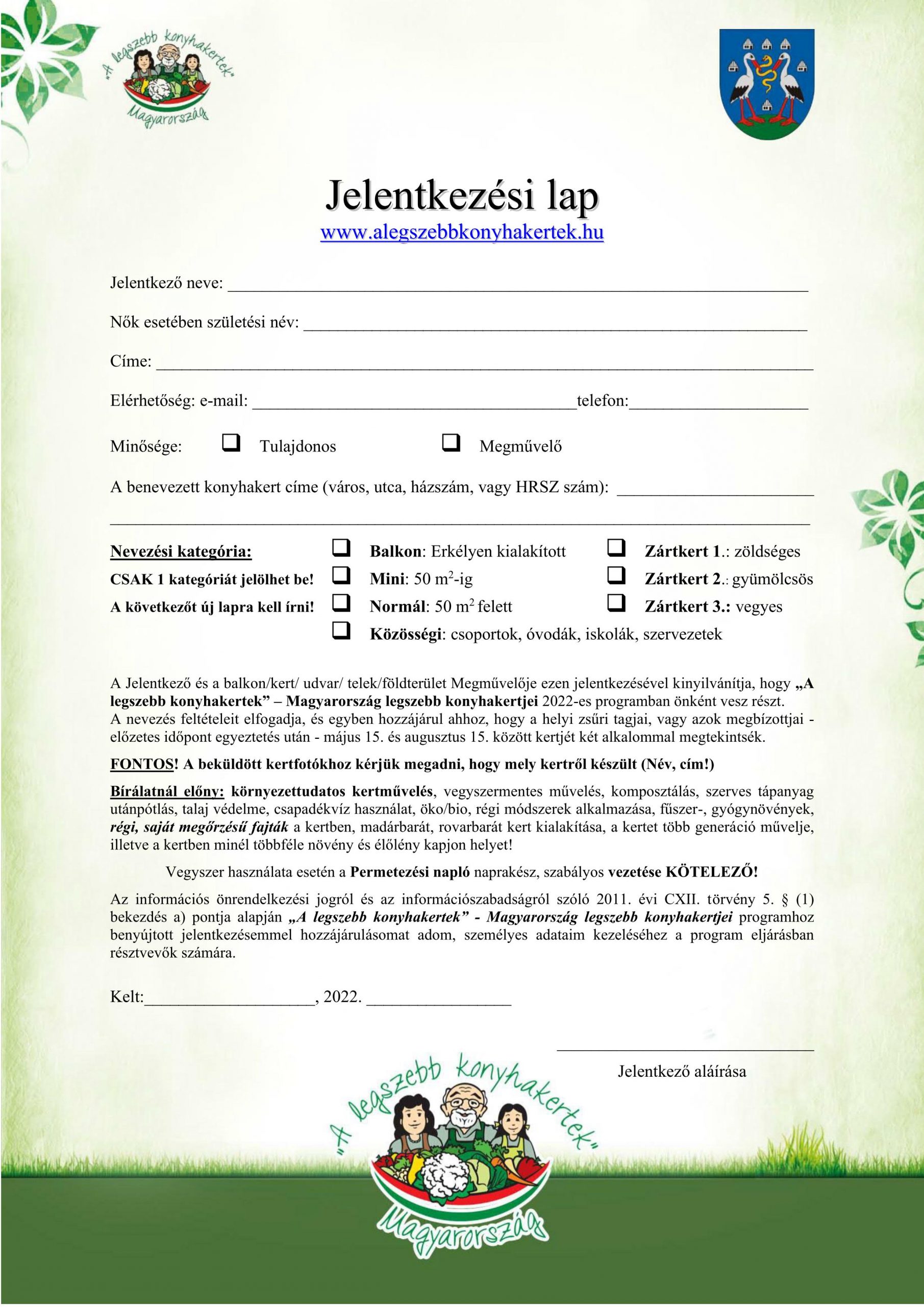Jelentkezési lap kérhető és leadható: