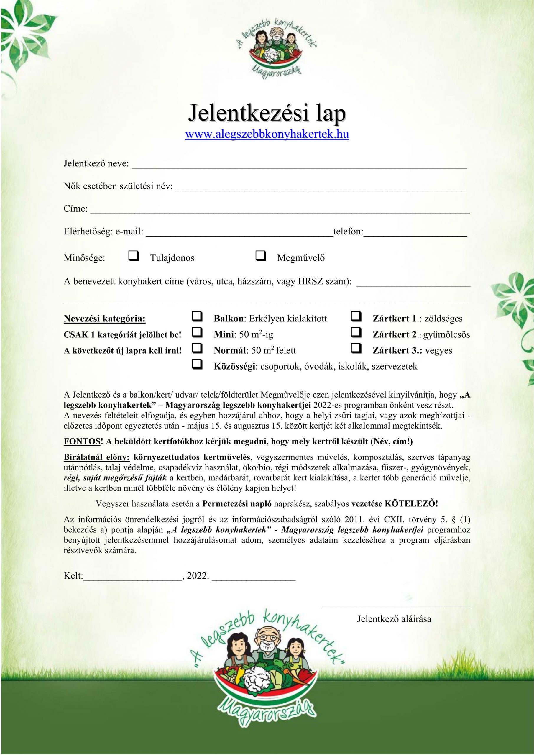Jelentkezési lap kérhető és leadható: