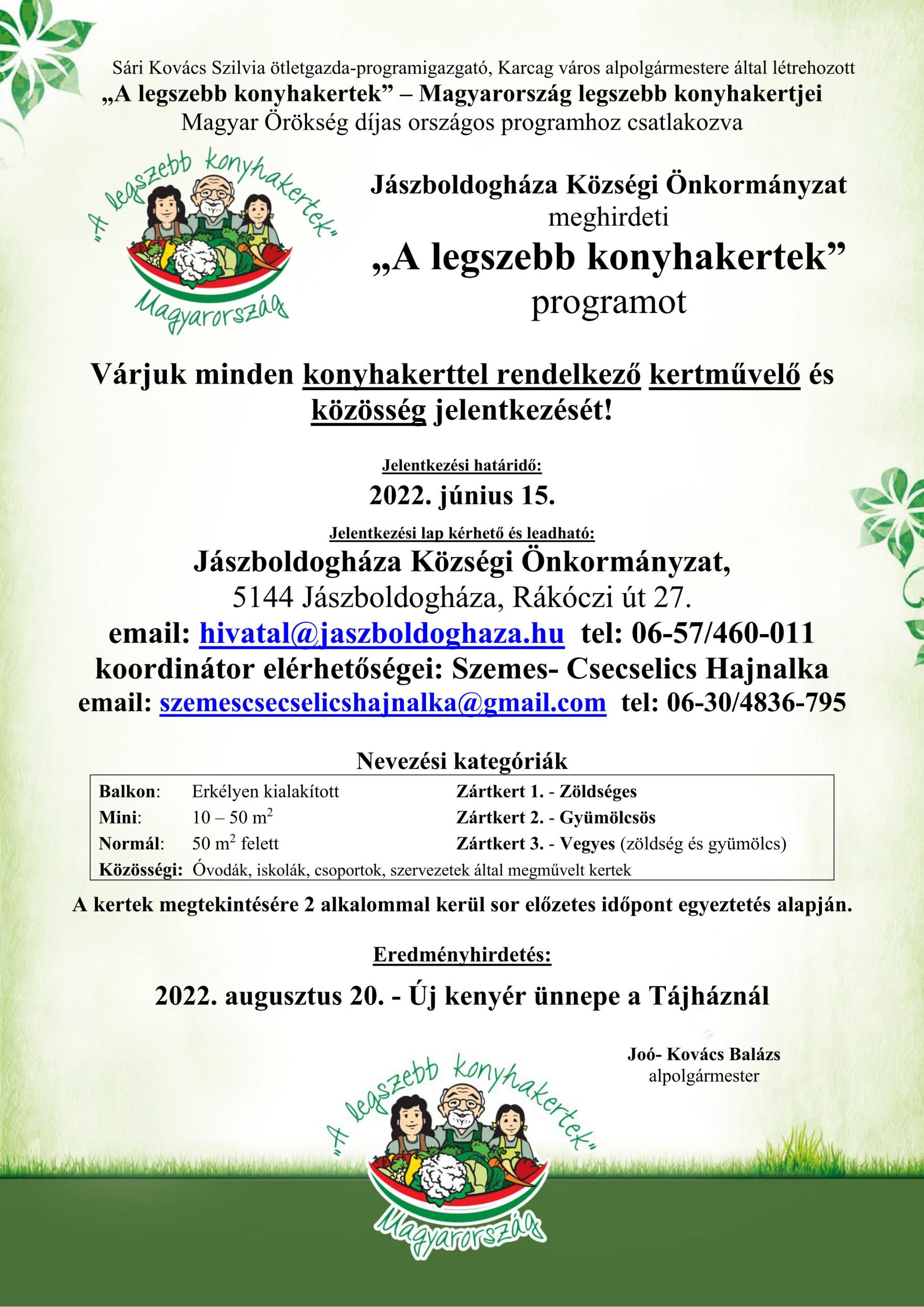 „A legszebb konyhakertek” – Magyarország legszebb konyhakertjei Magyar Örökség díjas országos programhoz meghirdeti Jászboldogházán