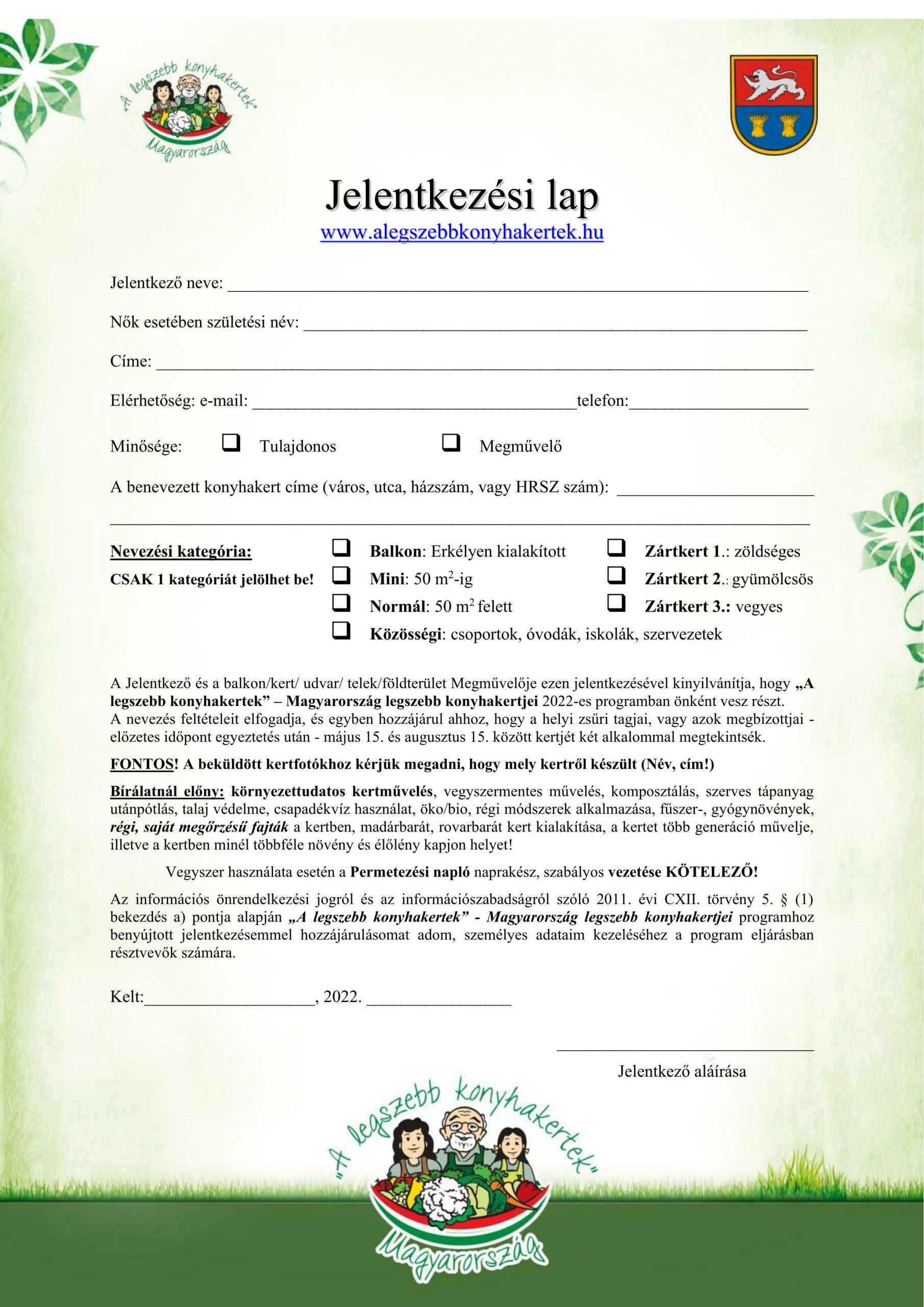Jelentkezési lap kérhető és leadható: