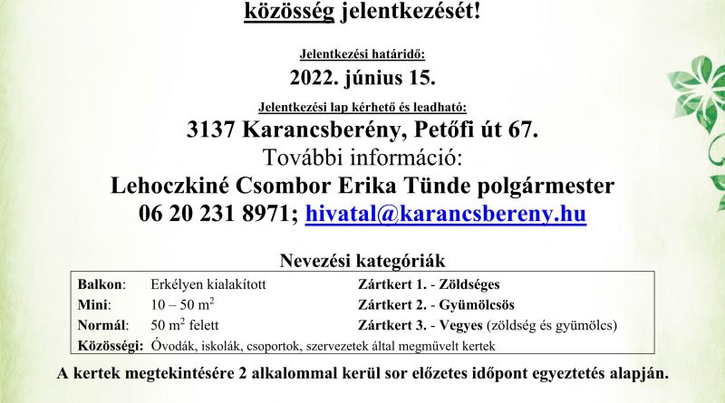 Karancsberény – „A legszebb konyhakertek” program meghirdetése