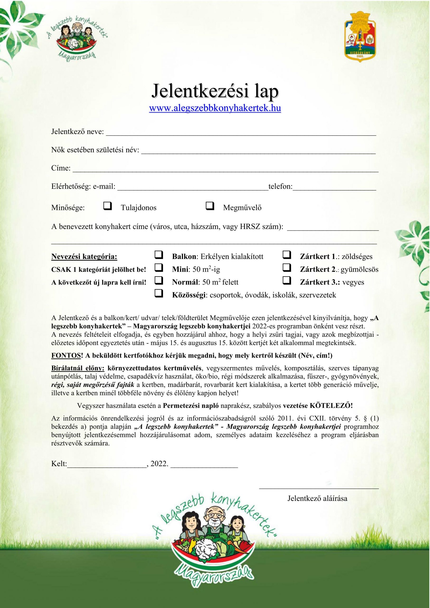 Jelentkezési lap kérhető és leadható: