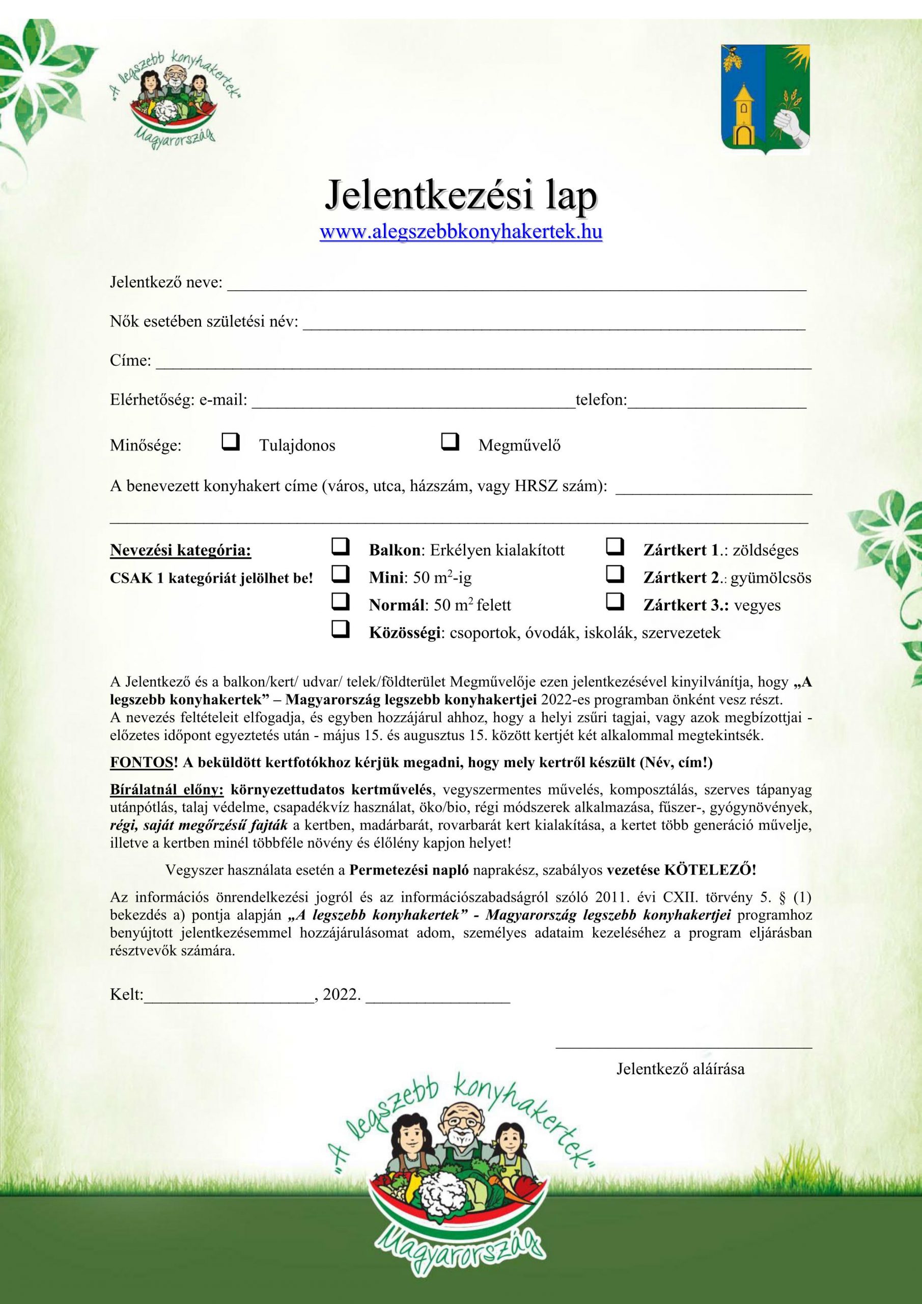 Jelentkezési lap kérhető és leadható: