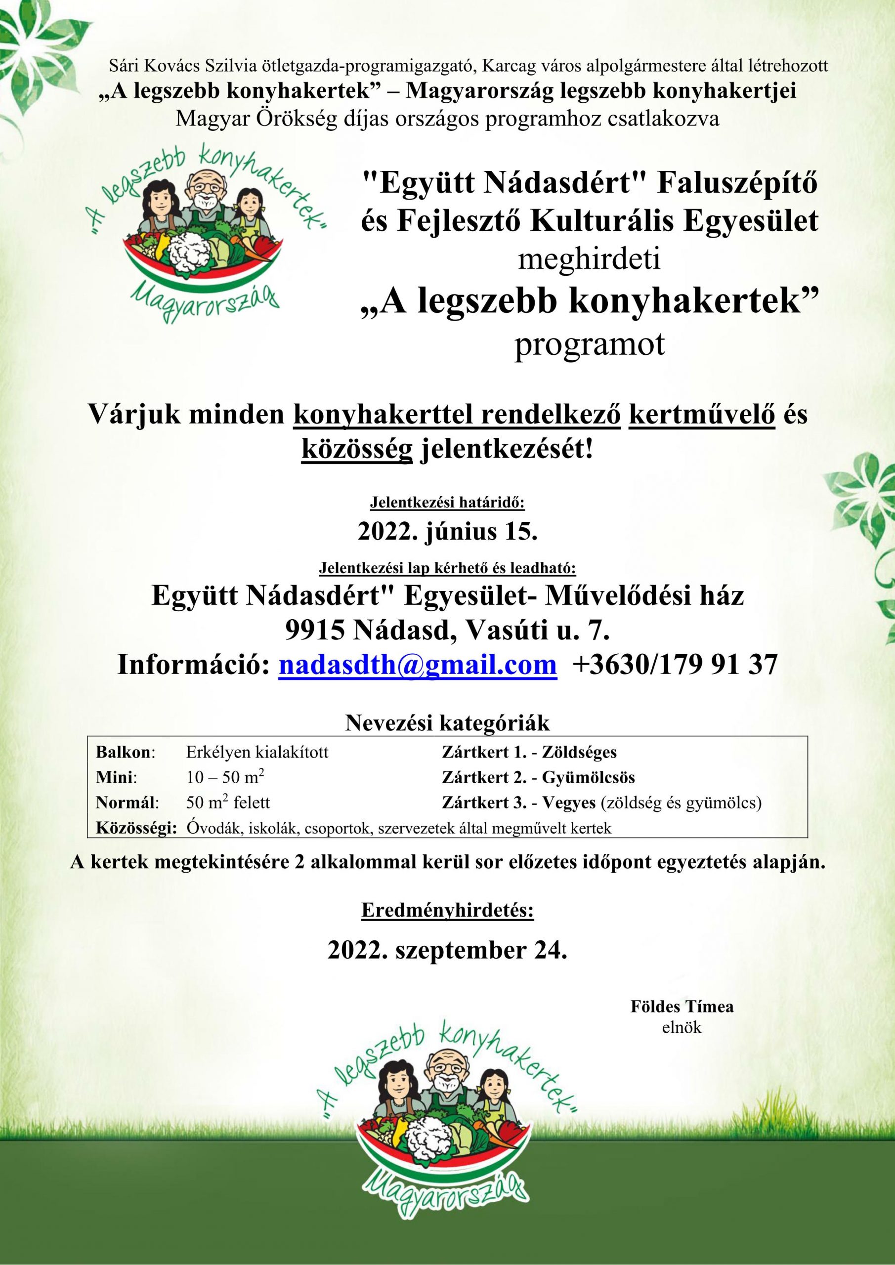 „A legszebb konyhakertek” – Magyarország legszebb konyhakertjei Magyar Örökség díjas országos programhoz meghirdeti Nádasdon