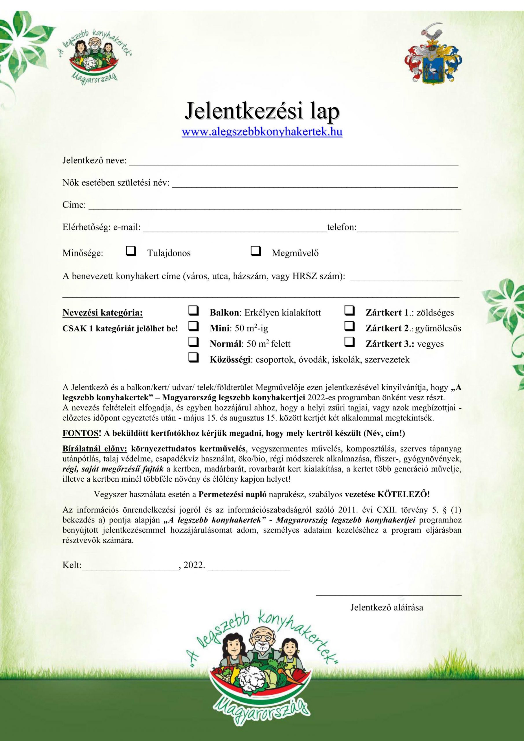 Jelentkezési lap kérhető és leadható: