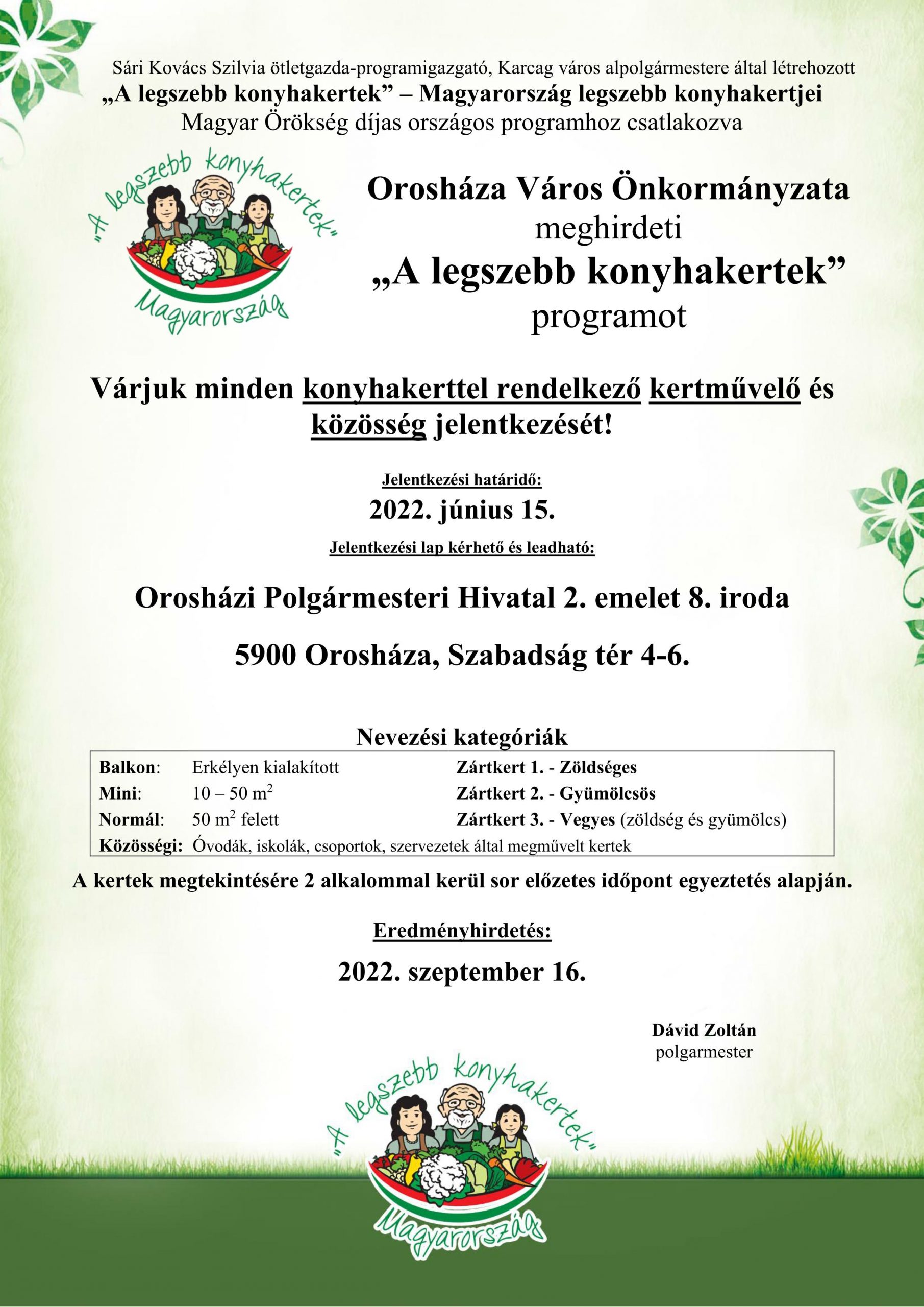 „A legszebb konyhakertek” – Magyarország legszebb konyhakertjei Magyar Örökség díjas országos programhoz meghirdeti Orosházán