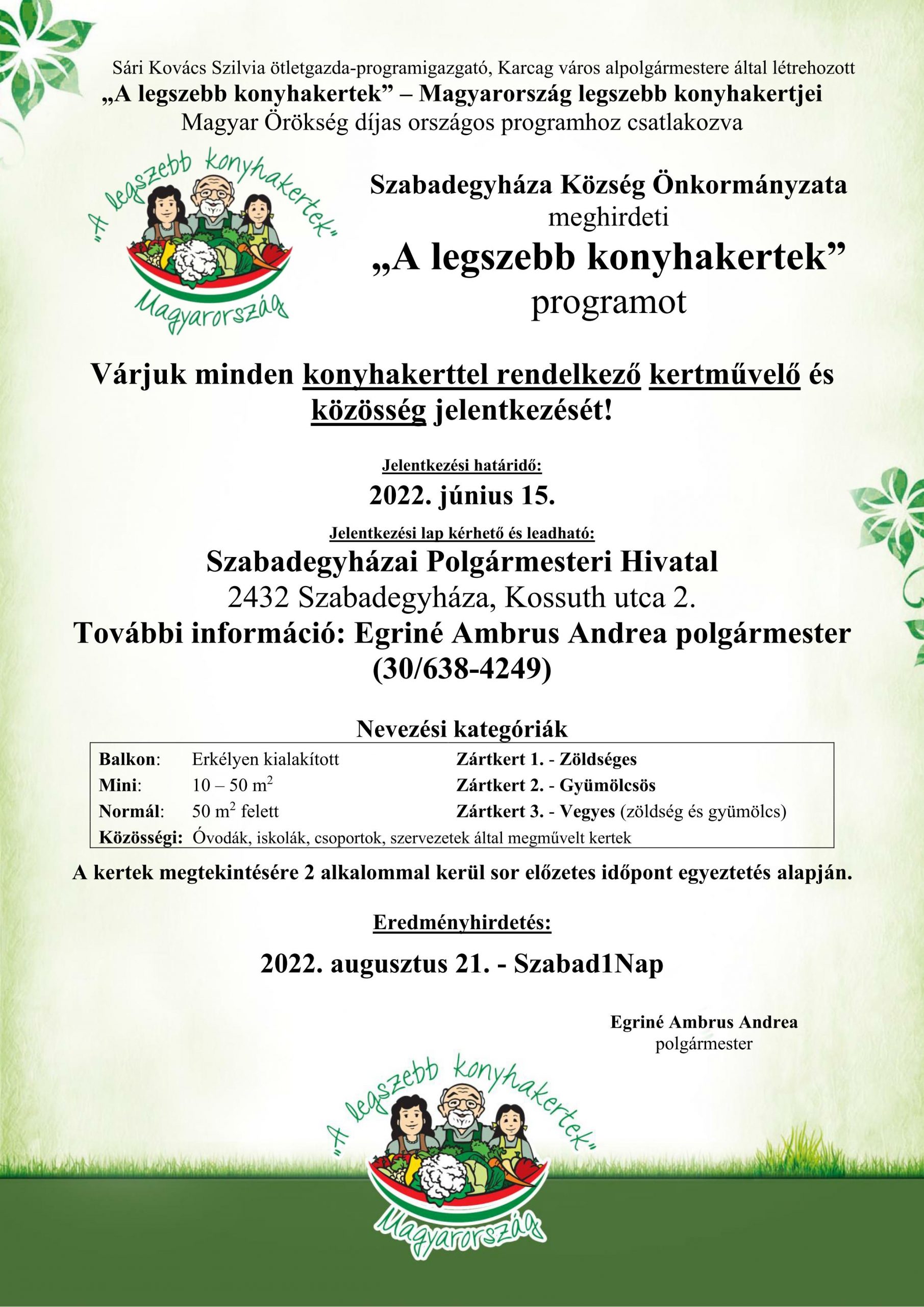 További információ: Egriné Ambrus Andrea polgármester (30/638-4249)