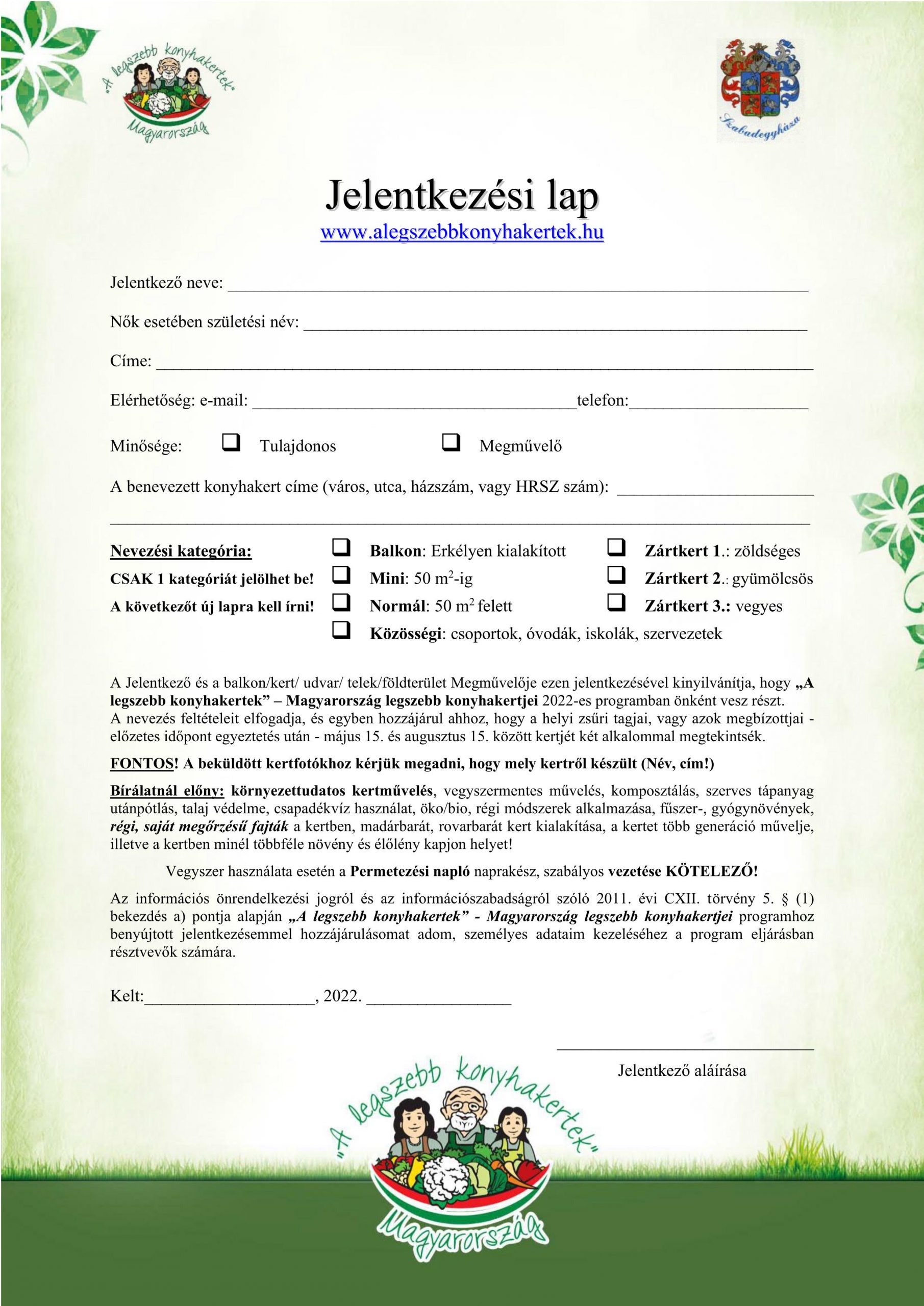 Jelentkezési lap kérhető és leadható: