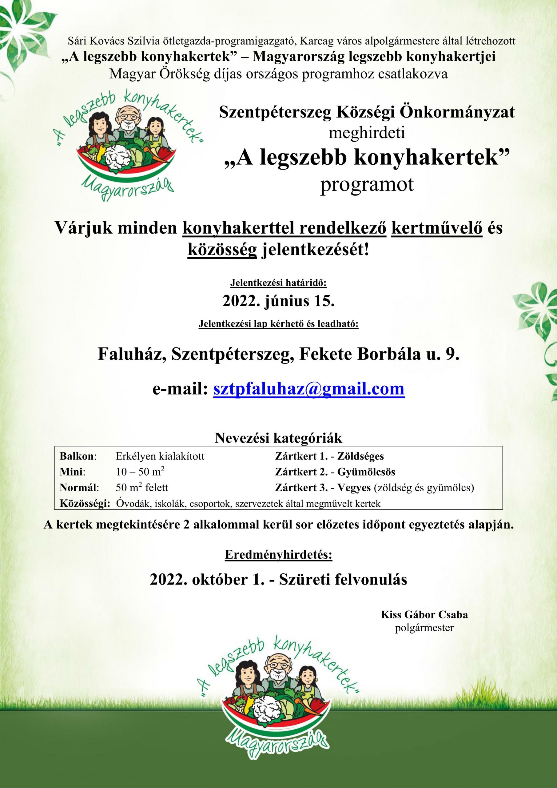 Szentpéterszeg – „A legszebb konyhakertek” program meghirdetése
