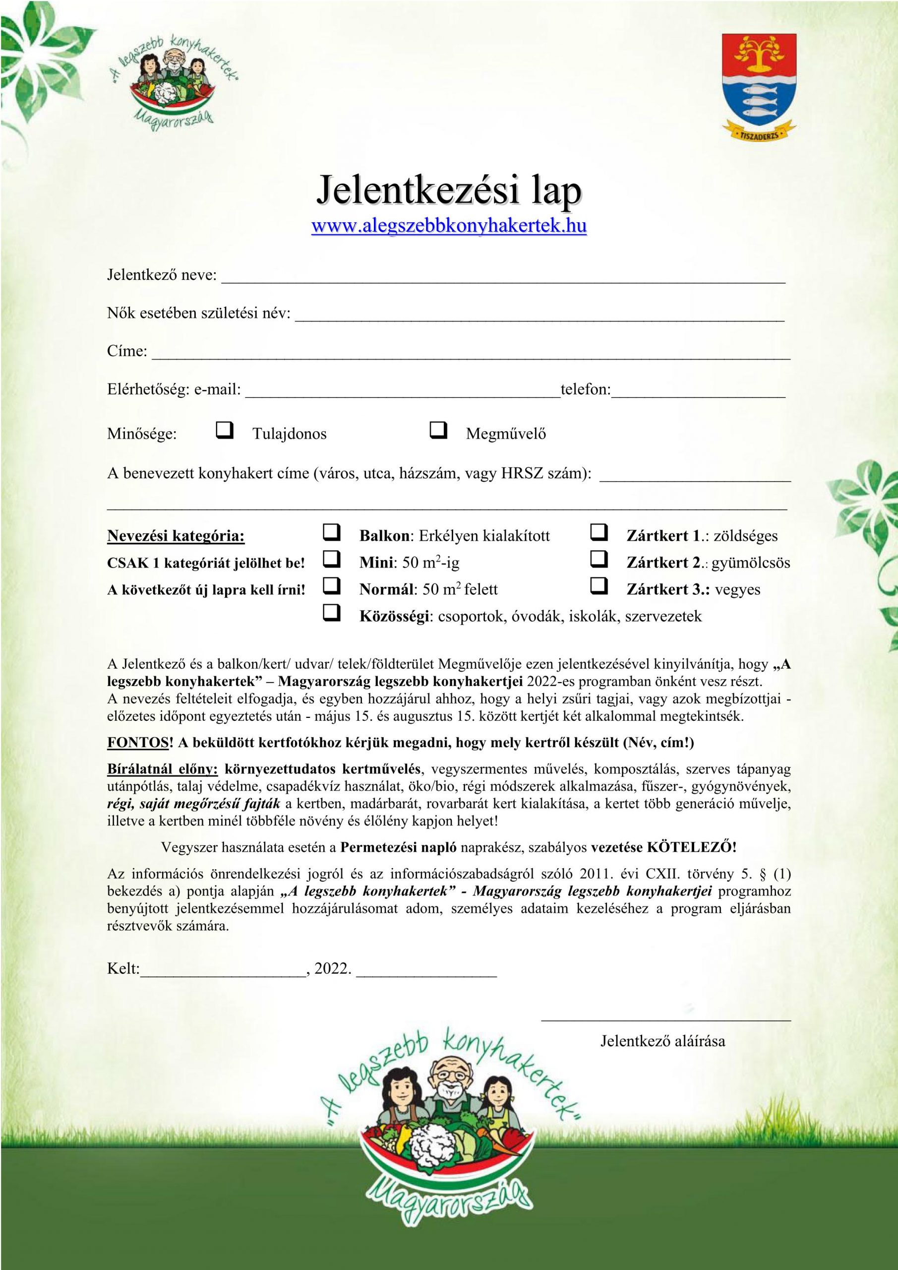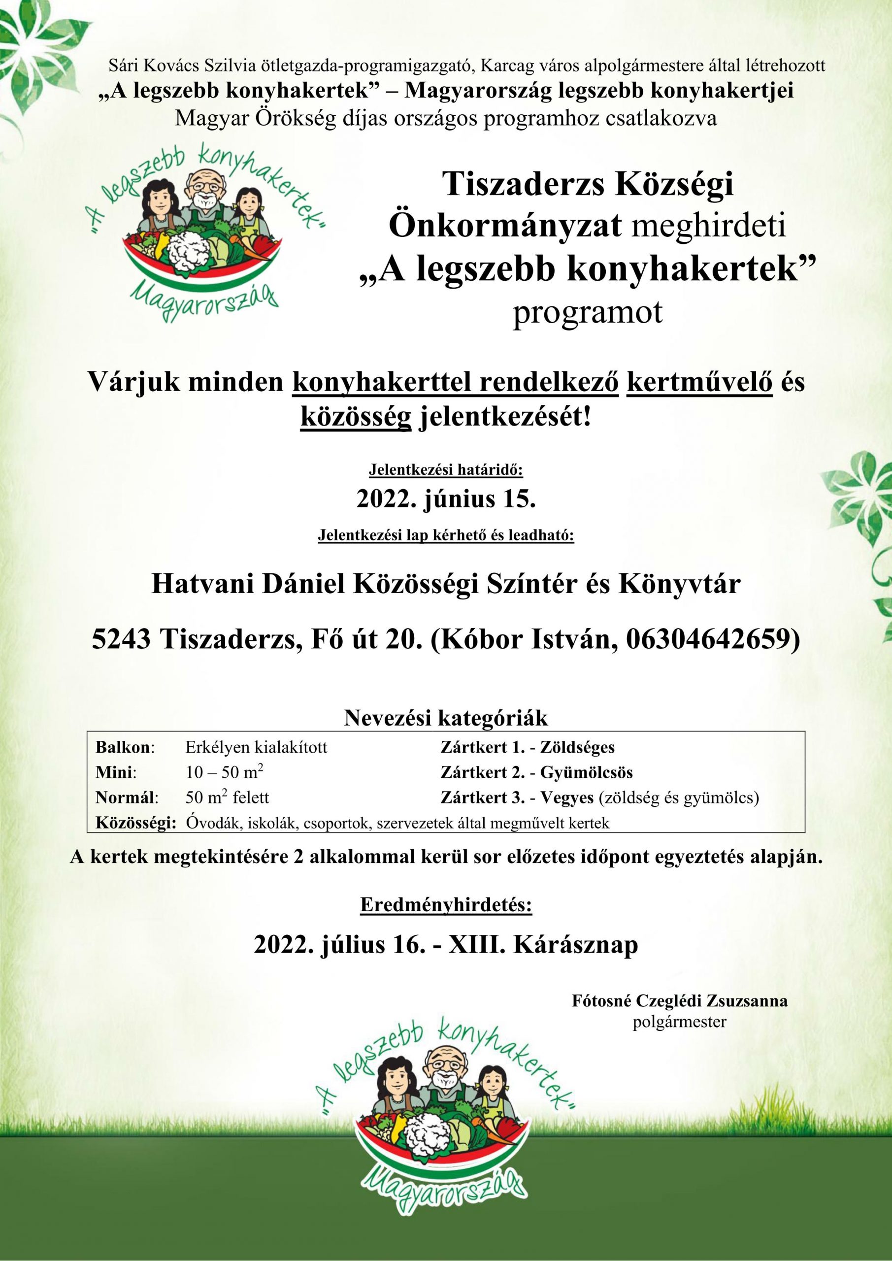 Tiszaderzs – „A legszebb konyhakertek” program meghirdetése