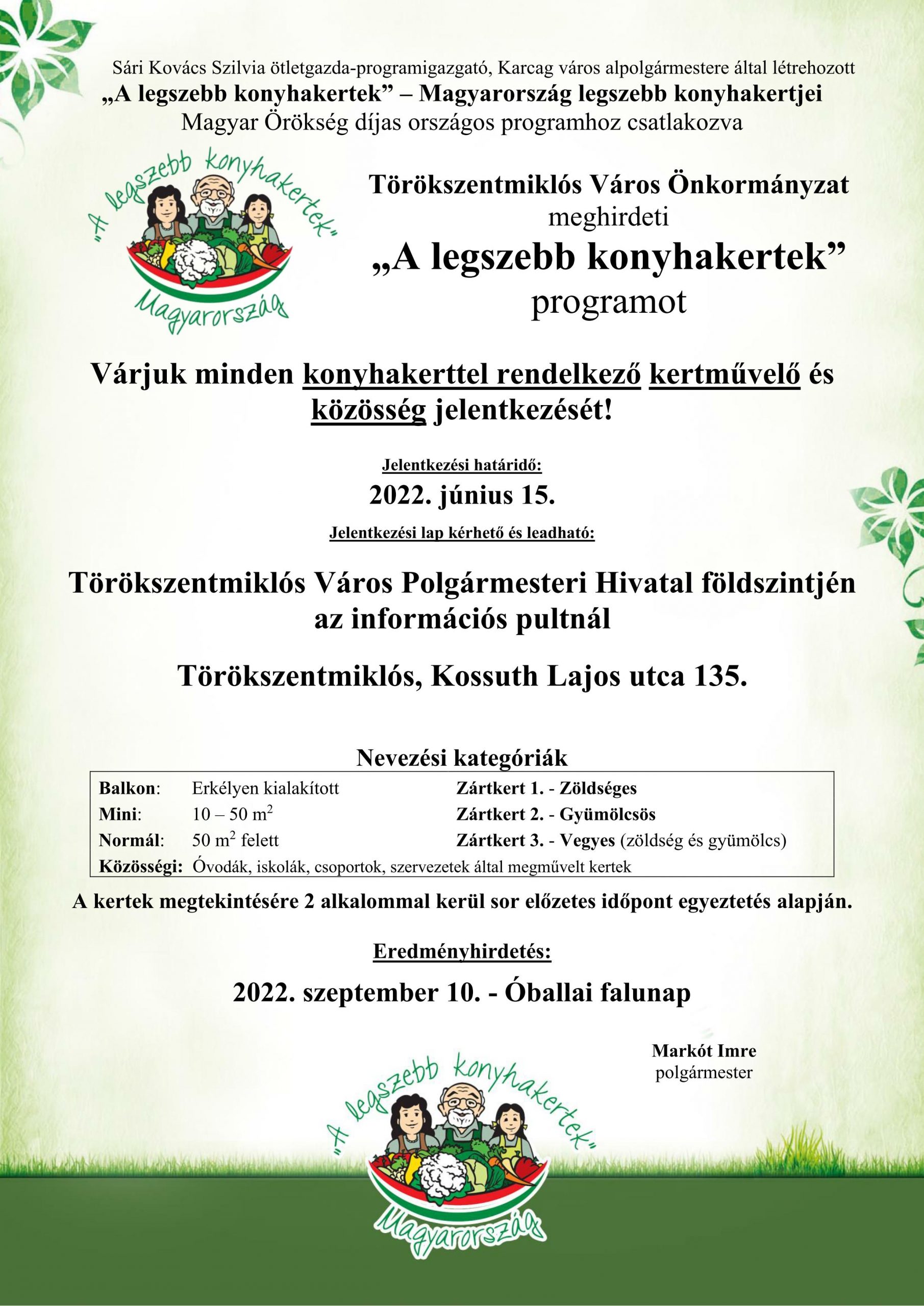 „A legszebb konyhakertek” – Magyarország legszebb konyhakertjei Magyar Örökség díjas országos programhoz meghirdeti Törökszentmiklóson