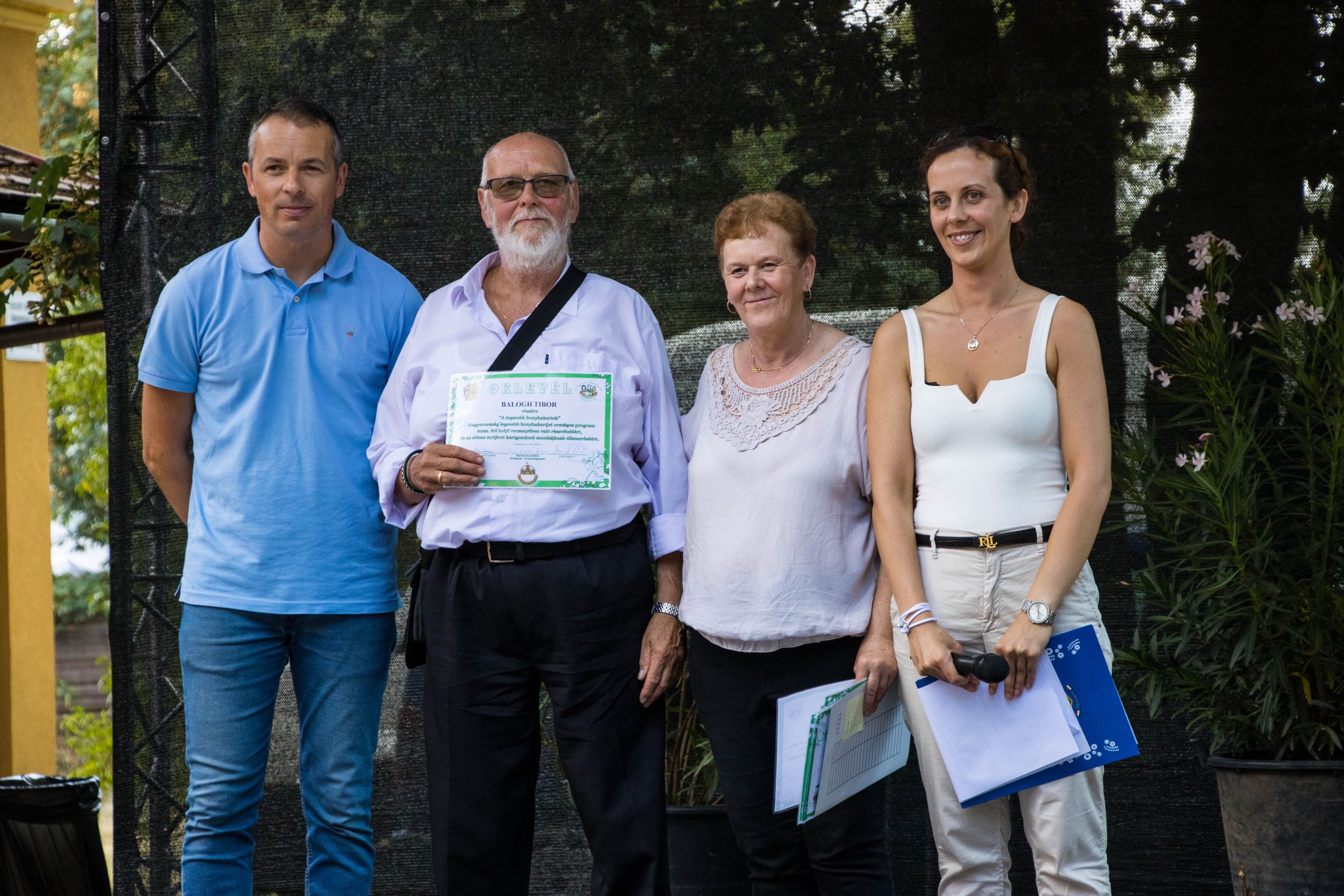A kedvezőtlen időjárás ellenére az összes versenyzőnk kertjében gyönyörködhettünk, melyekben szebbnél szebb növényeket láthattunk és nagy szerencsénkre olykor kóstolhattunk is belőlük. Az 5 főből álló bírálóbizottság, akik szakmai és laikus szemmel is bírálták a kerteket nagyon meg voltak elégedve a látottakkal. A zsűri elnöke: Csiba Zoltán agrármérnök-mezőgazdasági szaktanár a Letenyey középiskola tanára, immáron másodszor látja el az elnöki feladatokat. Bernwallner Bernadett-Czeillinger Ferenc kertészmérnökök, a Felcsúti Kertészeti Áruda munkatársai. Csepeli Árpád az áruda ügyvezető igazgatója első szóra segítségül sietett a verseny lebonyolításában és a versenyzőknek ajándékot is ajánlott fel. Nagyon köszönjük Árpinak a nemes gesztust! Az önkormányzat részéről Vígh Andrásné, Erzsike csatlakozott a csapathoz. A kertmustrákon a Letenyey Lajos Gimnázium, Technikum és Szakképzőiskola médiása és könyvtárosa: Szecsődi Péter fotózta a kerteket mindenféle szögből, ahogy a versenykiírásban kérték. Peti már másodszor segíti a versenyt, képei szerepelnek az országos versenyre jelölt portfóliójában. Utoljára, de nem utolsó sorban az egész verseny koordinátora és lebonyolítója: Szecsődi Tima Zsuzsa. Nagyon nehéz, és felelősségteljes feladata volt a zsűrinek, mert csodaszép kertek közül kellett kiválasztani azt az egyet, aki részt vesz az országos megmérettetésen.