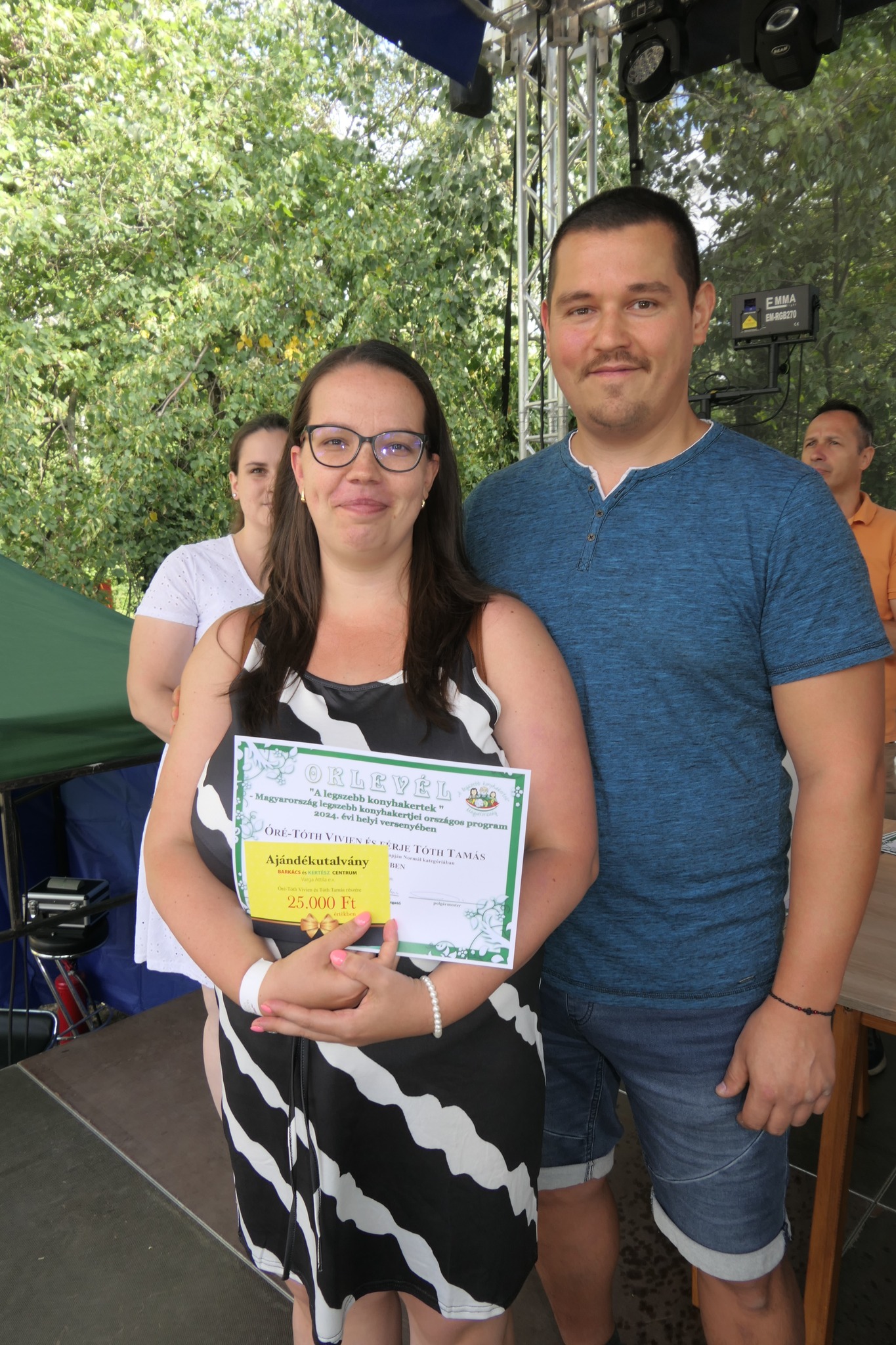 Megosztott 1. helyet ért el Kaló István, akinek díja az oklevél mellett egy Ft értékű ajándékutalvány az AGROPONT felajánlásából. Bár István mindig szerény mikor a kertről beszél, elmondhatjuk, hogy egy csodás ÖKO kert az övé. Továbbá 1. helyezést szerzett Óré-Tóth Vivien és férje Tóth Tamás, a díj az oklevél mellett egy ajándékutalvány a Barkács Centrumtól. A fiatal pár nemrég született kisfiúk mellett is nagy odaadással művelik kertjüket.