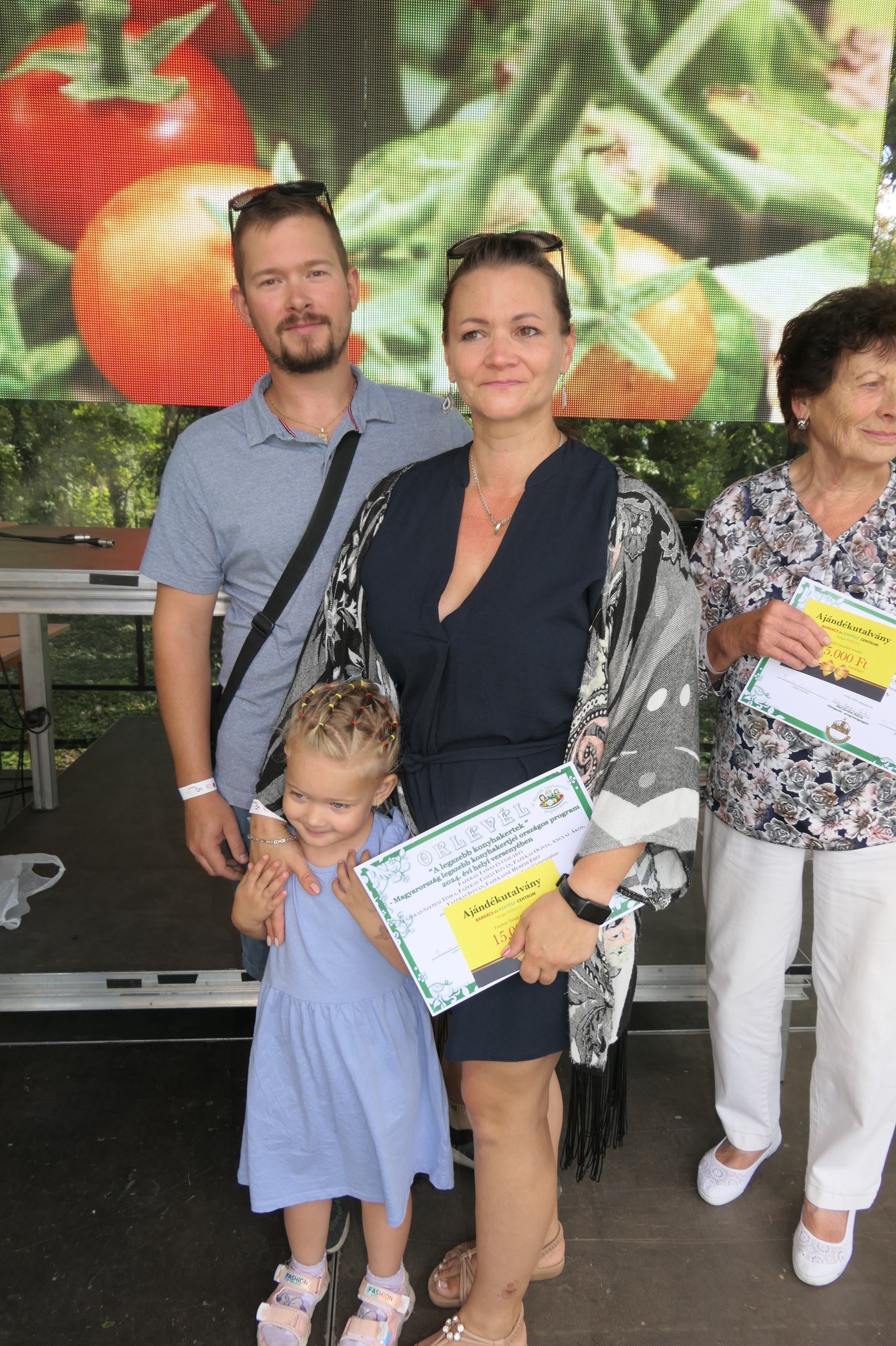 Molnár Judit díja az oklevél mellett egy ajándékutalvány a Bakos-Debreczeni Virág és Palánta Kertészet felajánlásából. Juditnak nagy segítsége fia Csaba, aki a görögdinnye termesztésben ért el sikert.