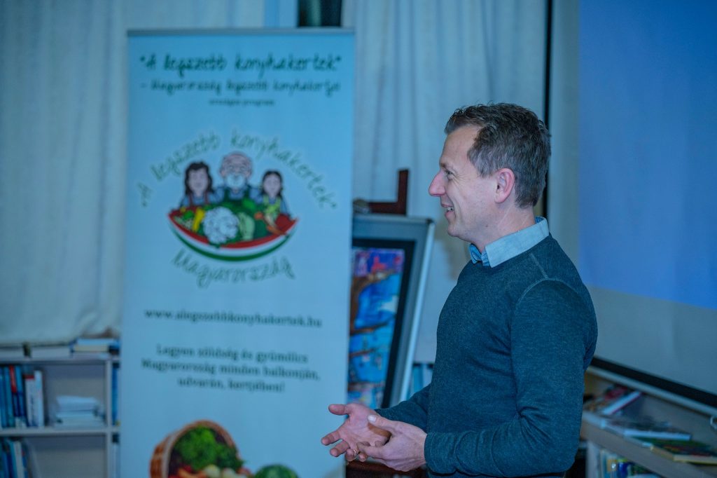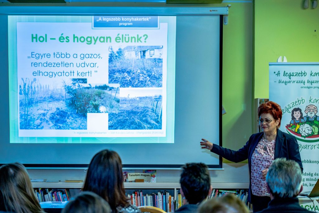 Útban a bió felé – ezt volt a címe az előadásnak. Szó volt kertművelési szokásokról, a módszerek alakulásáról, a nyári forróságról, a kártevők elleni természetes védekezésről, a talajtakarásról, és arról is, hogy a gyerekek, fiatalok is egyre nyitottabbak a kertészkedésre.