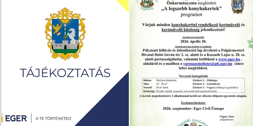 Újra meghirdették Egerben a „Legszebb konyhakertek” versenyt, amelynek célja a kertművelés hagyományainak megőrzése és a helyi kertészkedők munkájának elismerése. A kezdeményezés arra is ösztönöz, hogy minél többen foglalkozzanak konyhakerttel, és az évek során felhalmozott tudás generációról generációra tovább öröklődhessen.