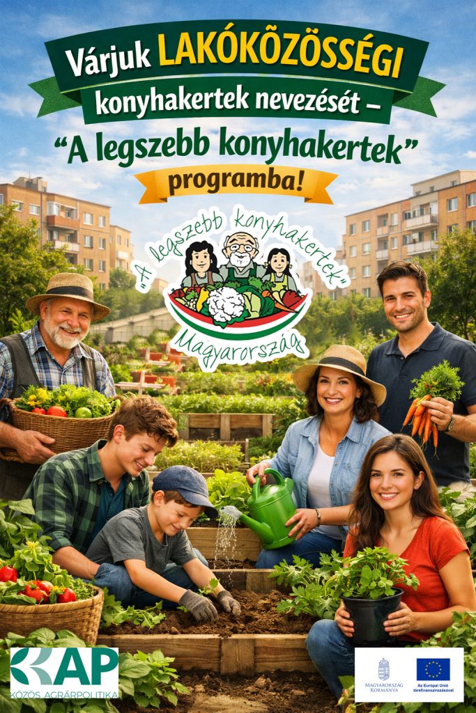 Várjuk a lakóközösségek, társasházak, utcai közösségek és városi kertcsoportok nevezését az országos „A legszebb konyhakertek” programba! Legyen szó néhány magaságyásról a társasház udvarán, egy gondosan ápolt közösségi kertről a város szívében, vagy egy összefogással létrehozott zöldségről a faluszélen — minden kert érték, amely példát mutat másoknak is.