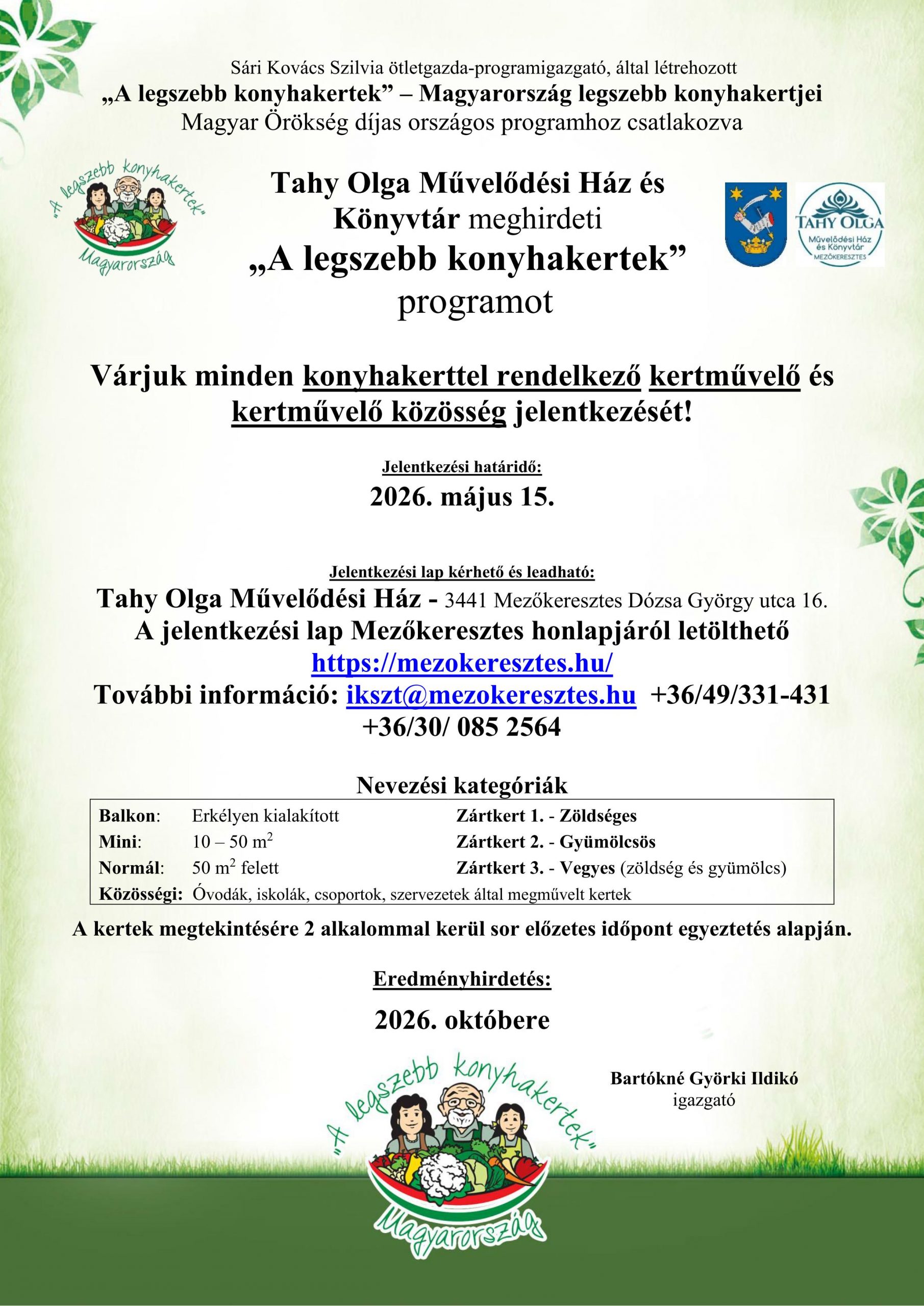 További információ: ikszt@mezokeresztes.hu +36/49/331-431