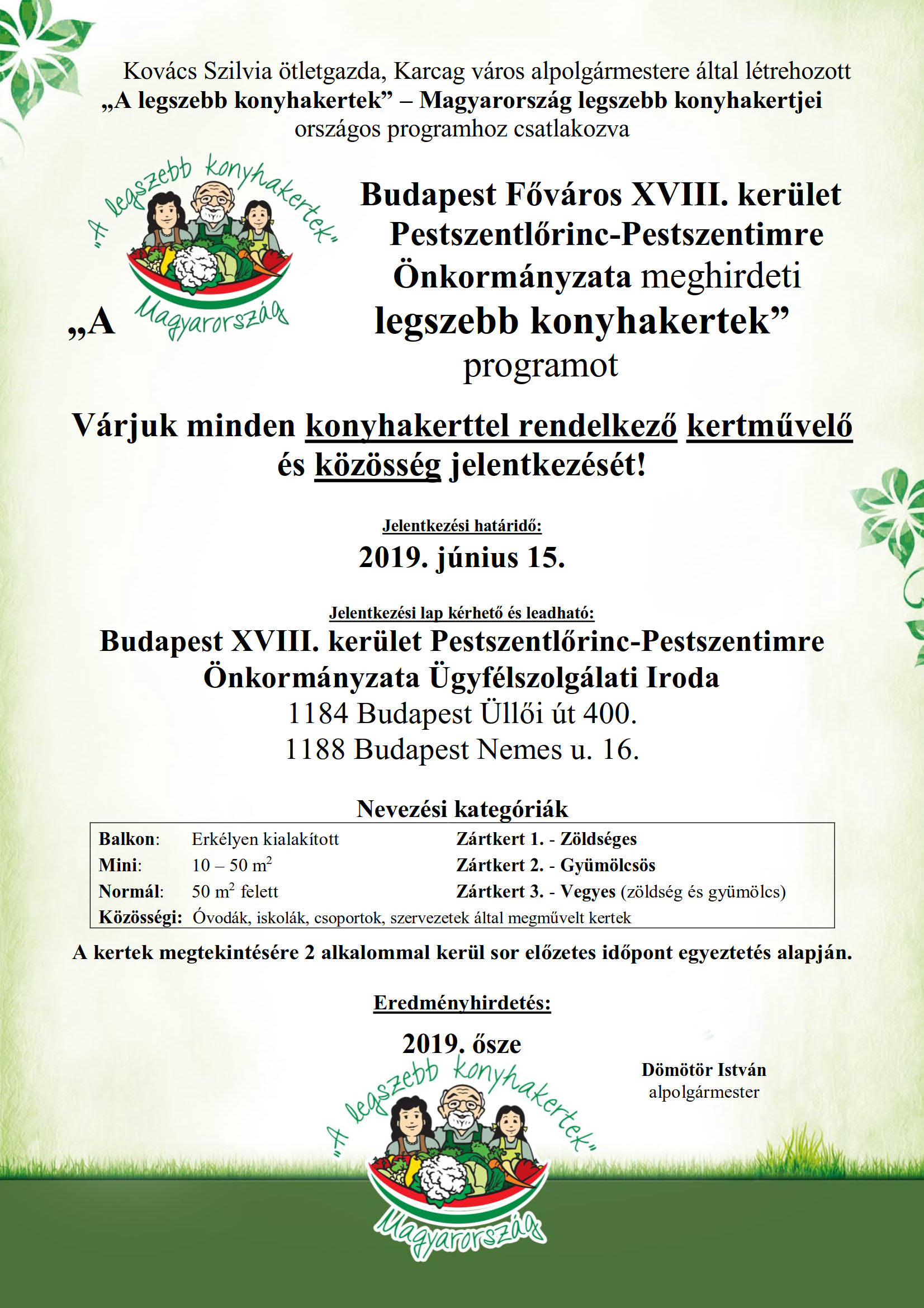 Budapest Főváros XVIII. kerület Pestszentlőrinc-Pestszentimre Önkormányzata meghirdeti „A legszebb konyhakertek” programot
