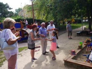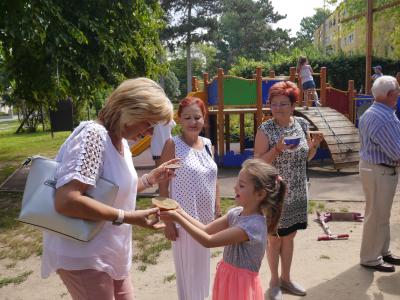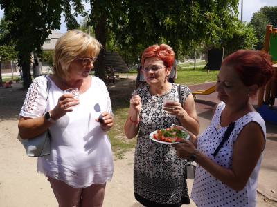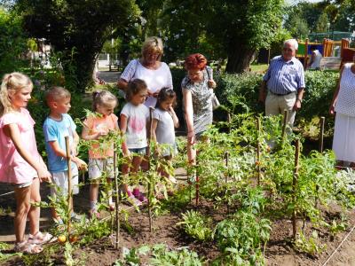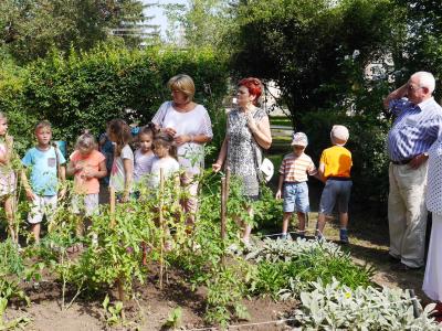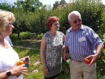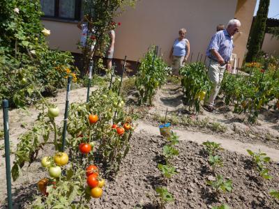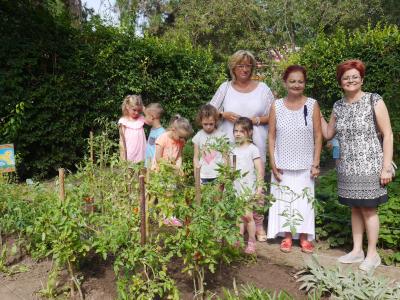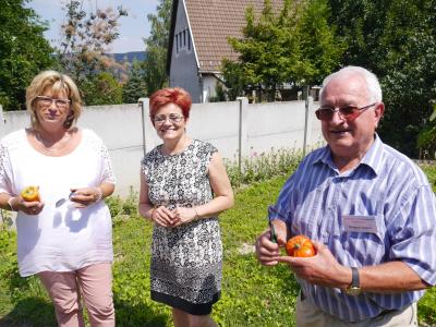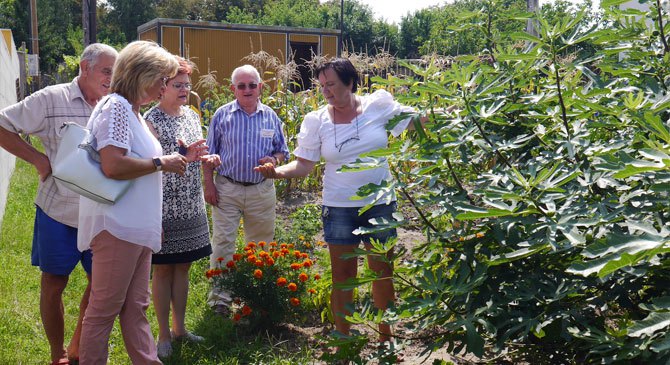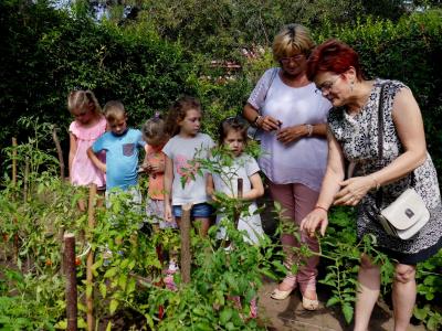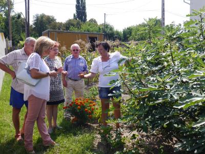 Esztergom legszebb konyhakertjei közül három helyszínt tekintett meg ma (július 26-án) Kovács Szilvia, az országos kertmozgalom programigazgatója, Romanek Etelka polgármesterrel közösen. Esztergom Szentgyörgymezői Kertbarátkör koordinátora, Magyar József kalauzolta a karcagi alpolgármestert városunkban, aki már személyes ismerőseiként köszöntötte a helyi kertművelőket, hisz városunk polgárai rendszeresen kapnak országos elismeréseket a Magyarország legszebb konyhakertjei versenyen. A Bánomi Óvodában kialakított Közösségi csoportos kertben 4 ágyást alakítottak ki a kicsik, akik örömmel mutatták meg elsőként a kiskertjeiket. „Mert itt minden érted van, érezd jól magad” mottóval nevelgetik az óvodapedagógusok a kiskertészeket, ahogy ők is a palántáikat. Ezt követően a szentgyörgymezői Duna-part mellett lévő Argyelán József és családja által művelt kertet csodálták meg a vendégek. Végül a Szentjánoskút dűlői következtek, ahol már szőlőt is lehetett csipegetni Magyaréknál Bocskoroskúton.